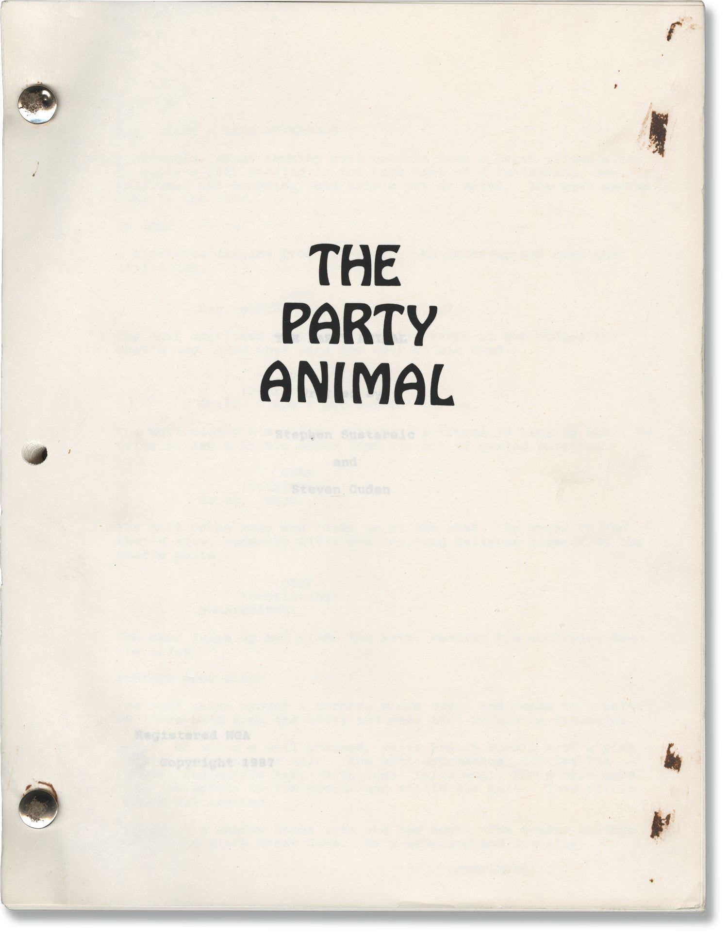 The Party Animal (Original screenplay for an unproduced film)