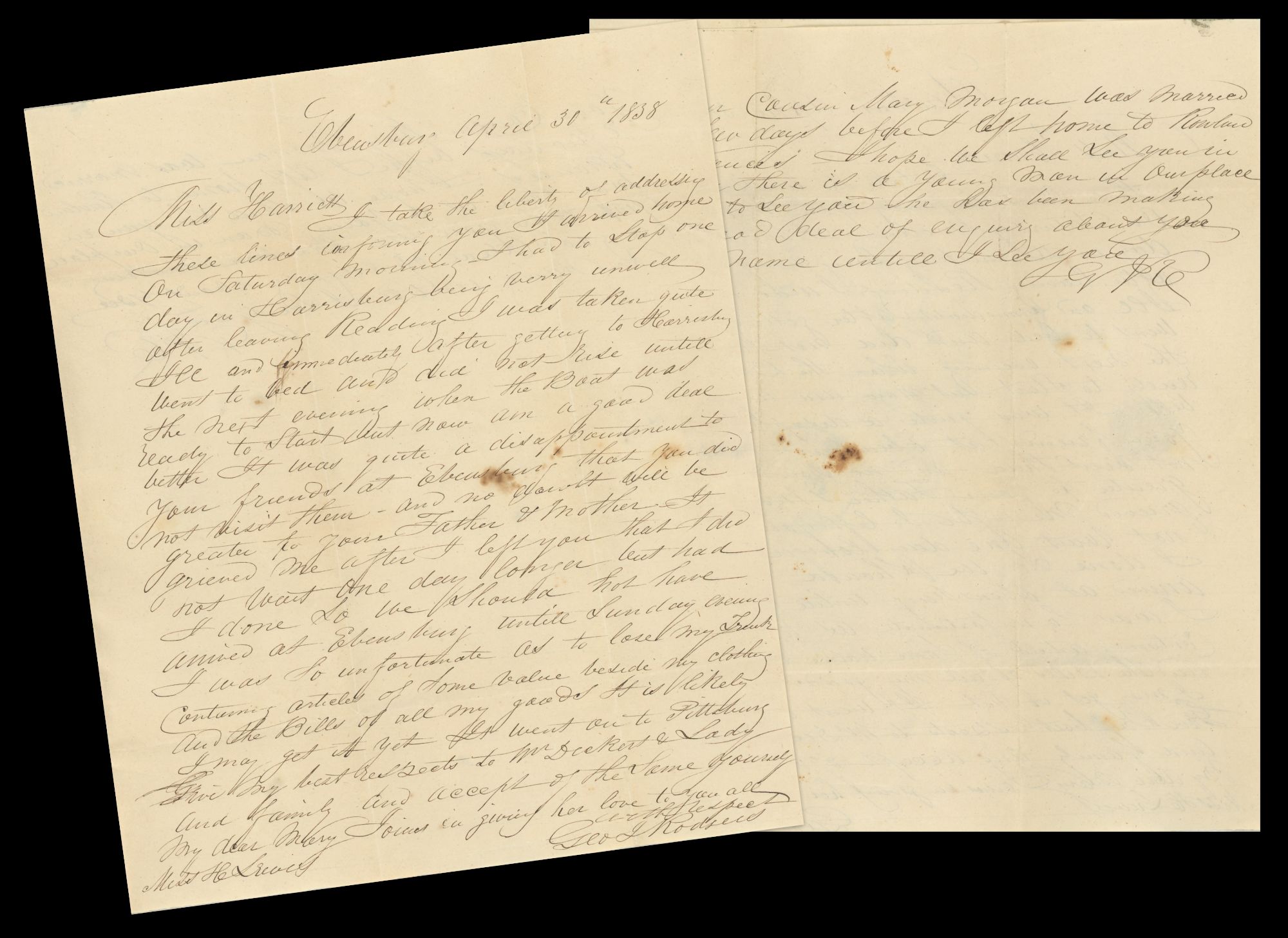 United States, Norway, and Germany, 1960. 320 items: 276 letters, thirty-eight modern photographs, five CDVs and one cabinet card; with a large amount of unsorted ephemera. Of the letters, 198 are from the nineteenth century, with most from the 1840s through 1870s; and seventy-eight are from the twentieth century, with most from the 1940s and 1950s. Excellent.. A broad archive, mainly of letters, spanning over 130 years. The letters were mostly sent between members of the Hill family of Pennsylvania and other families (Lewis, Hosack, and Weeks) that married in. In the nineteenth century, George Hill (1815–1895), his wife Harriet Lewis (1820–1852), and their two oldest daughters Jane Hosack (1842–1878) and Harriet Hill (1844–1928) are the main correspondents; in the twentieth, letters are mainly from Cornelia (1863–1948) and Charlotte (1874–deceased) Lewis, Harriet Lewis’ nieces, and the family of Nancy Weeks (1909–1992), her great-granddaughter-in-law. Weeks also had several correspondents in Europe immediately after World War II.