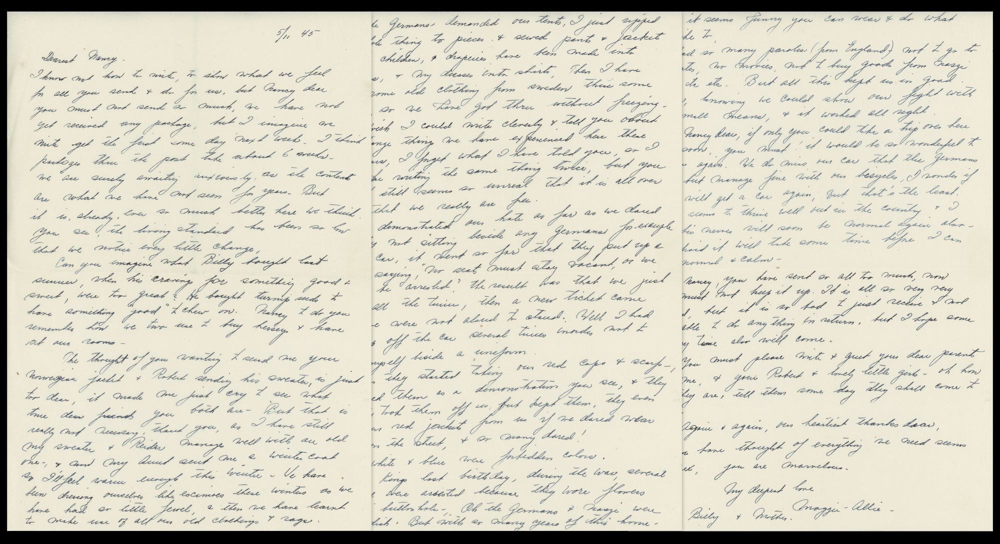 On the other end of the spectrum are the Bjelkes, a Norwegian family who write a number of times to Nancy. They describe the Nazi invasion: