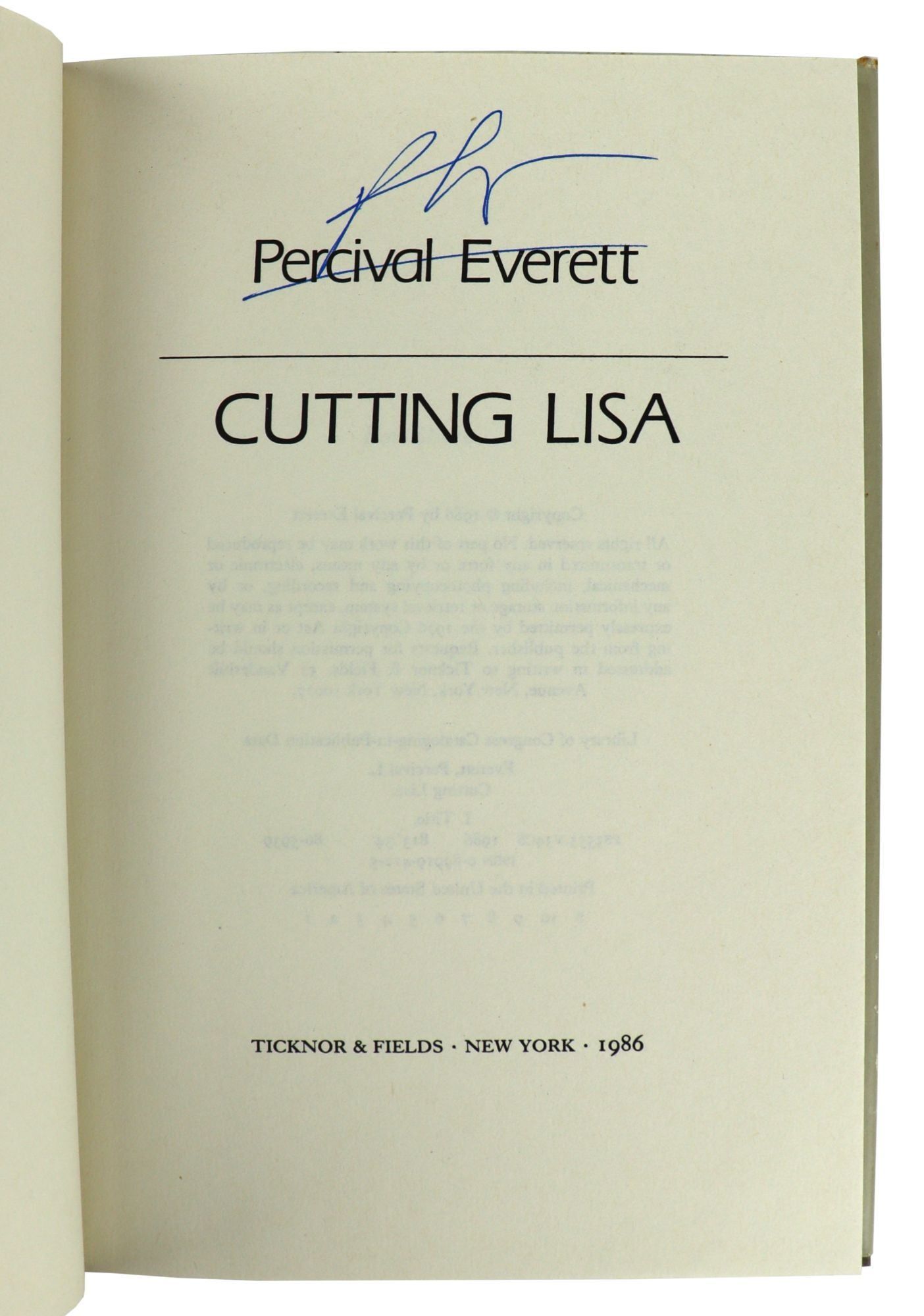 - New York: Ticknor & Fields, 1986