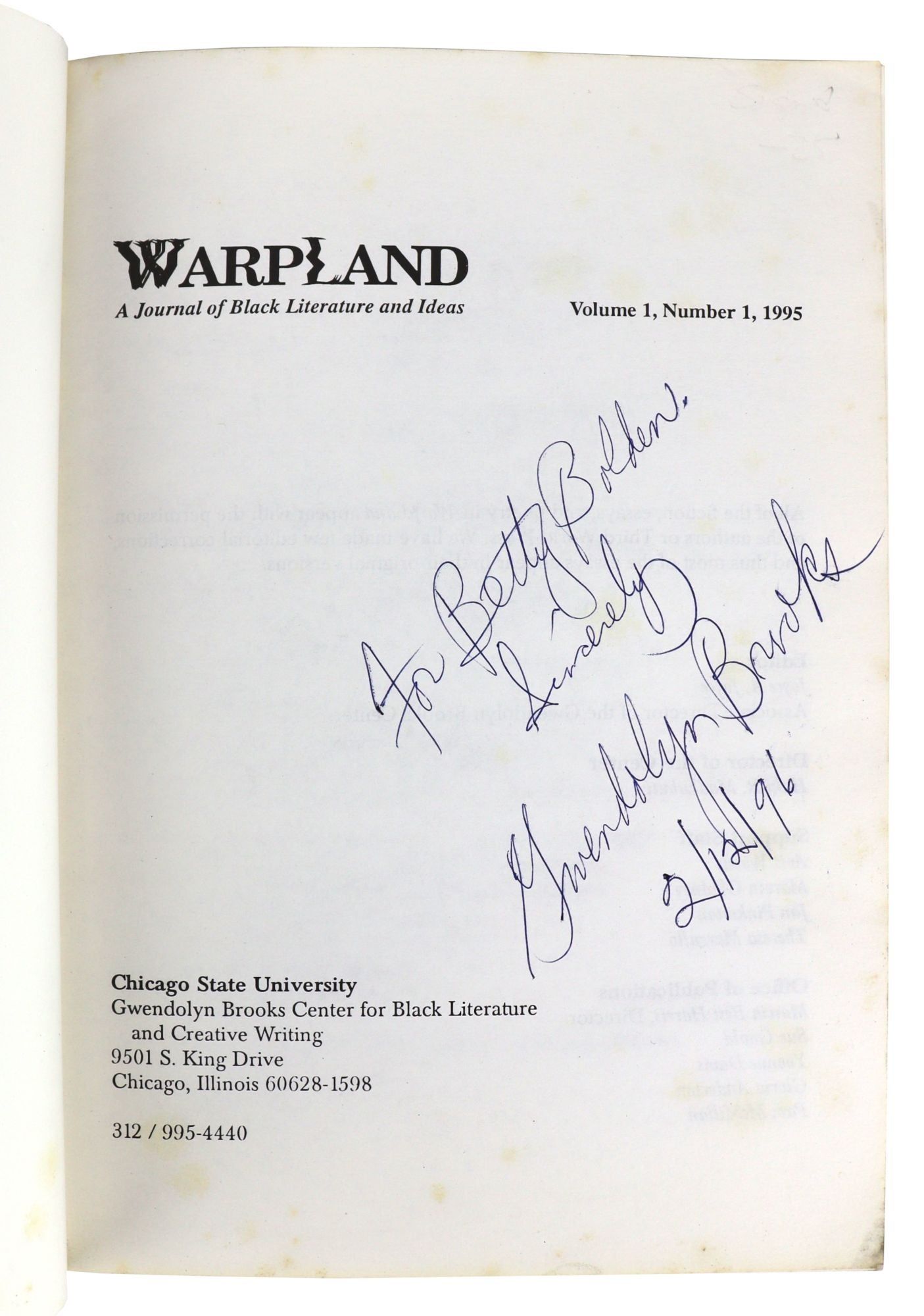 WarpLand: A Journal for Black Literature and Ideas, Vol. 1, no. 1, 1995 [Inscribed and Signed by Gwendolyn Brooks]