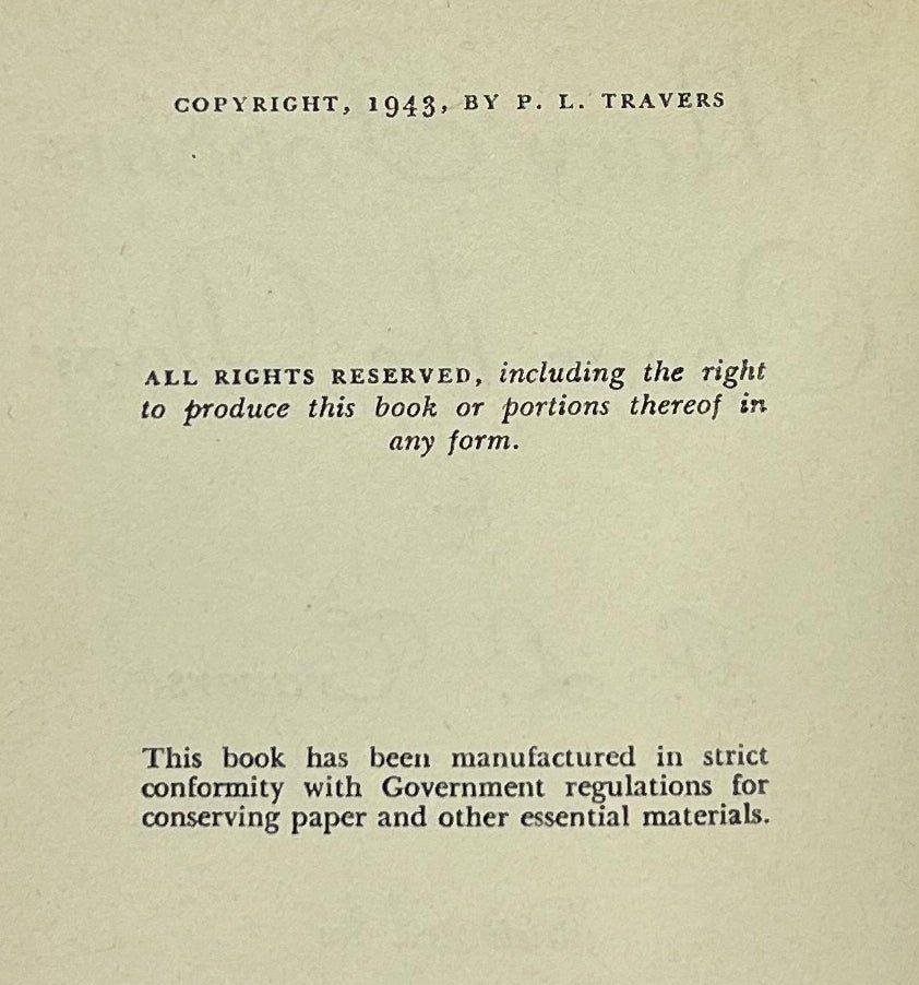 New York: Reynal and Hitchcock, 1943. First Edition. Hardcover. Very Good/Good. Illustrated by Mary Shepard and Agnes Sims. Very Good in a Good jacket, clipped, faded at the folds, chipped at the edges, with larger chips at the top. Yellow cloth with blue ink lettering and designs on the spine and front board. Bound with some reading wear and a forward lean, soiled at the top edge, clean internally. The third and final novel in the Mary Poppins series.