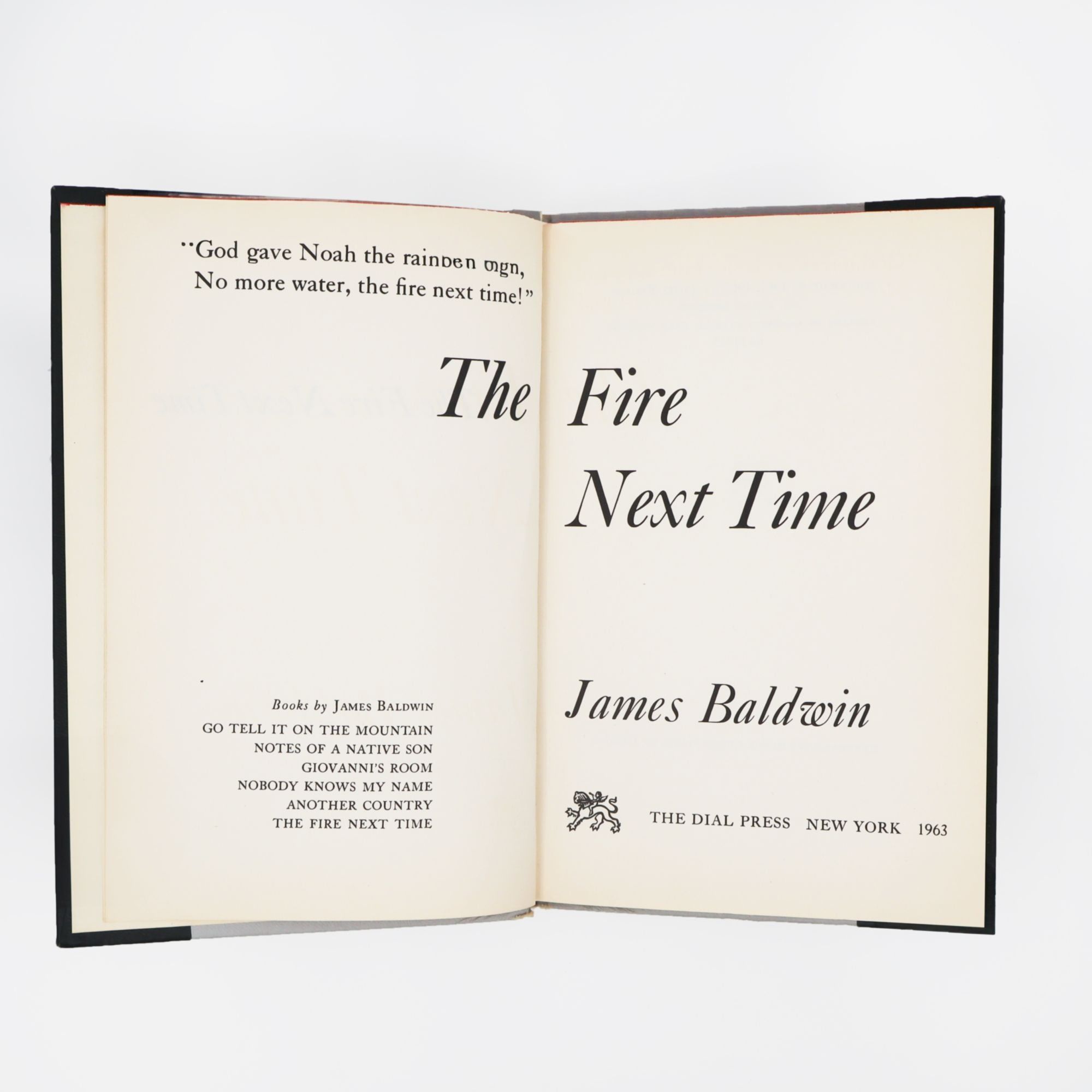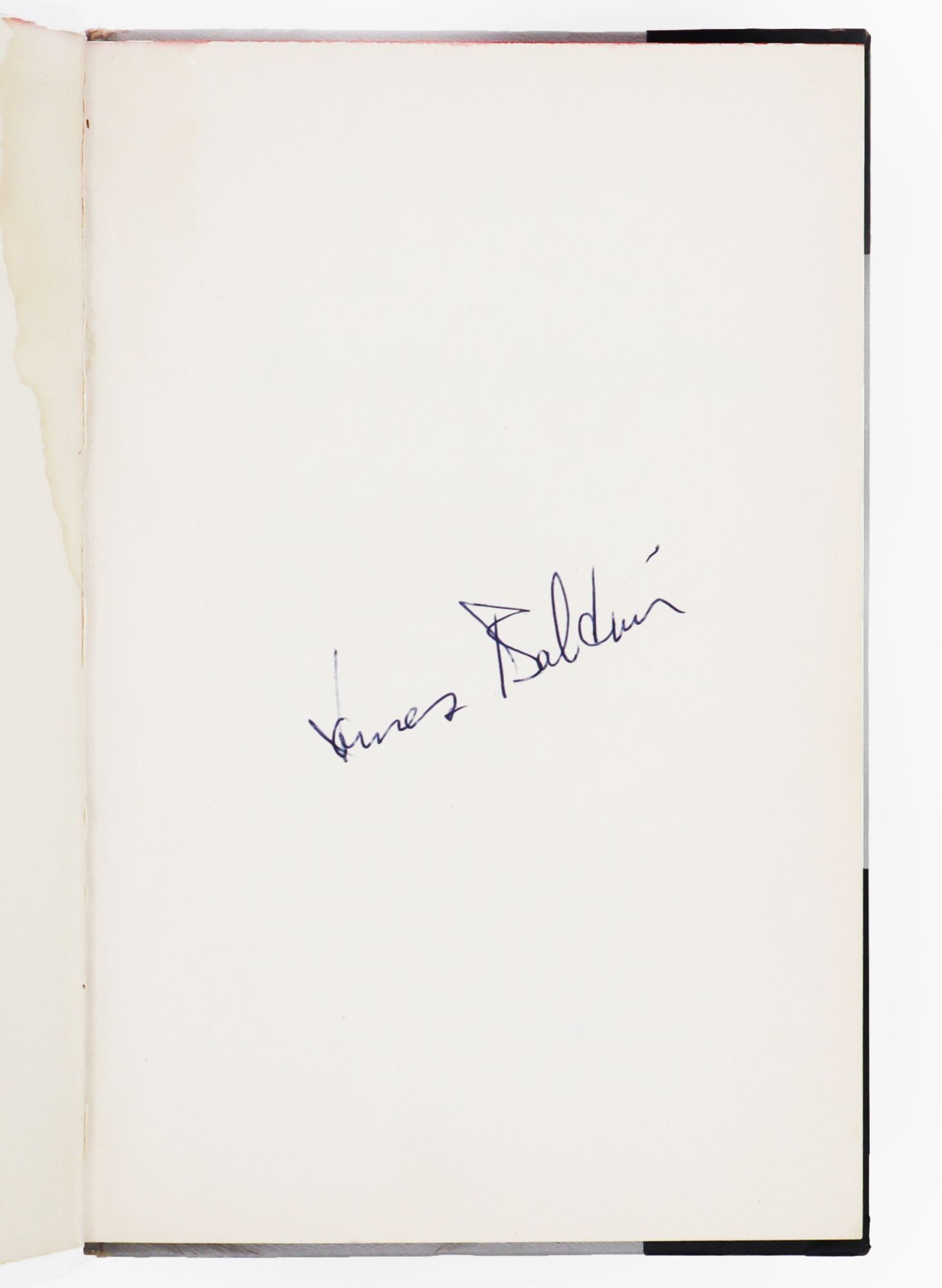 New York: Dial Press, 1963. First edition. 120 pp. 8vo. Grey and black cloth variant, stamped in red on cover and spine. Old waterstaining along top half of hinges, not visible on the outside of the book, endpapers very slightly cracked at hinges, not affecting hinges themselves, some general shelfwear; dust-jacket price clipped with light shelfwear. First edition. 120 pp. 8vo. Signed by Baldwin on the ffront flyleaf.