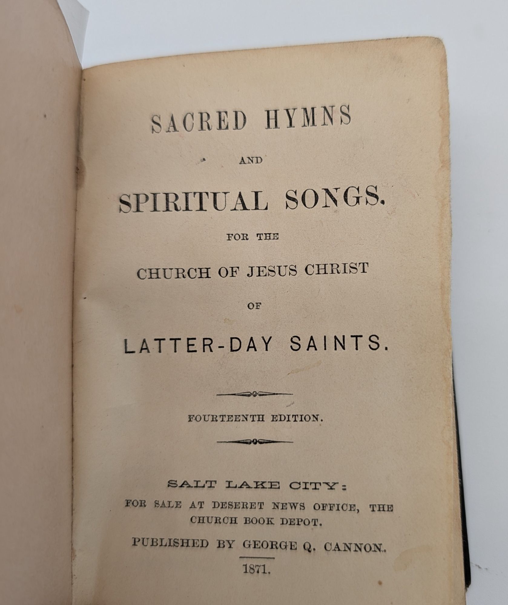 "This edition is the first published in Utah Territory, and possesses one distinctive peculiarity - it is not only printed and bound at the Church Printing Office, but the type in which it appears has been manufactured here. This issue differs from the two which precede it in one respect only, there have been fourteen hymns added to the collection; they, however, are placed in the last part of the book, so as not to interfere with the use of the other editions in common with this." - from the Preface to the Fourteenth Edition by George Q. Cannon.