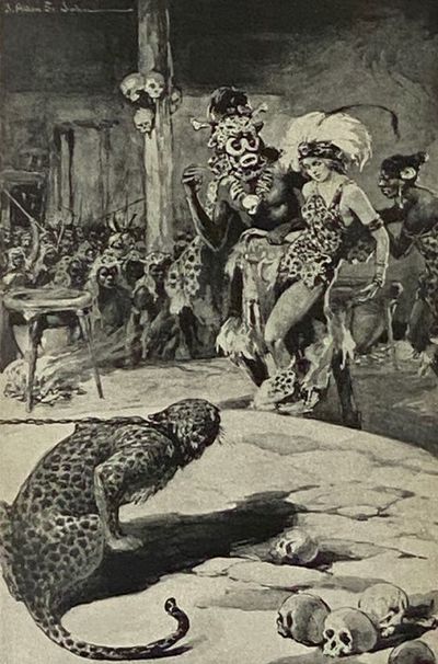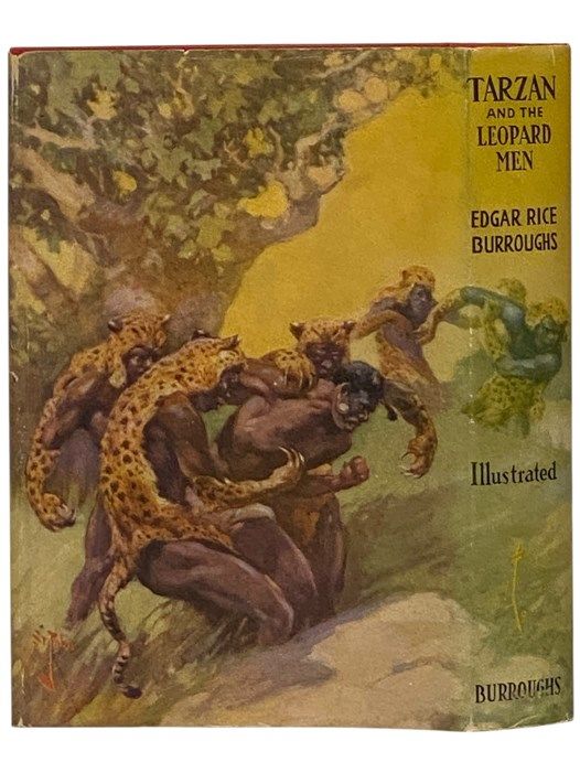 Tarzana: Edgar Rice Burroughs, Inc, 1940. Reprint. Hard Cover. Near Fine/Very Good. 7x5x0. St. John, J. Allen. 5th printing (Heins LeM-5). Jacket price clipped, small sticker remnant on front jacket flap, one section of toned pages (different paper stock than rest). Binding tight and square, pages clean and unmarked. 1940 Hard Cover. 332, [1] pp. 8vo. Red cloth, blue titles. Wrap-around jacket illustration, frontispiece by J. Allen St. John. The twentieth book in the Tarzan series, originally serialized in Blue Book Magazine in 1932. 'Though suffering from temporary amnesia, Tarzan battles a secret society of ruthless cannibals.