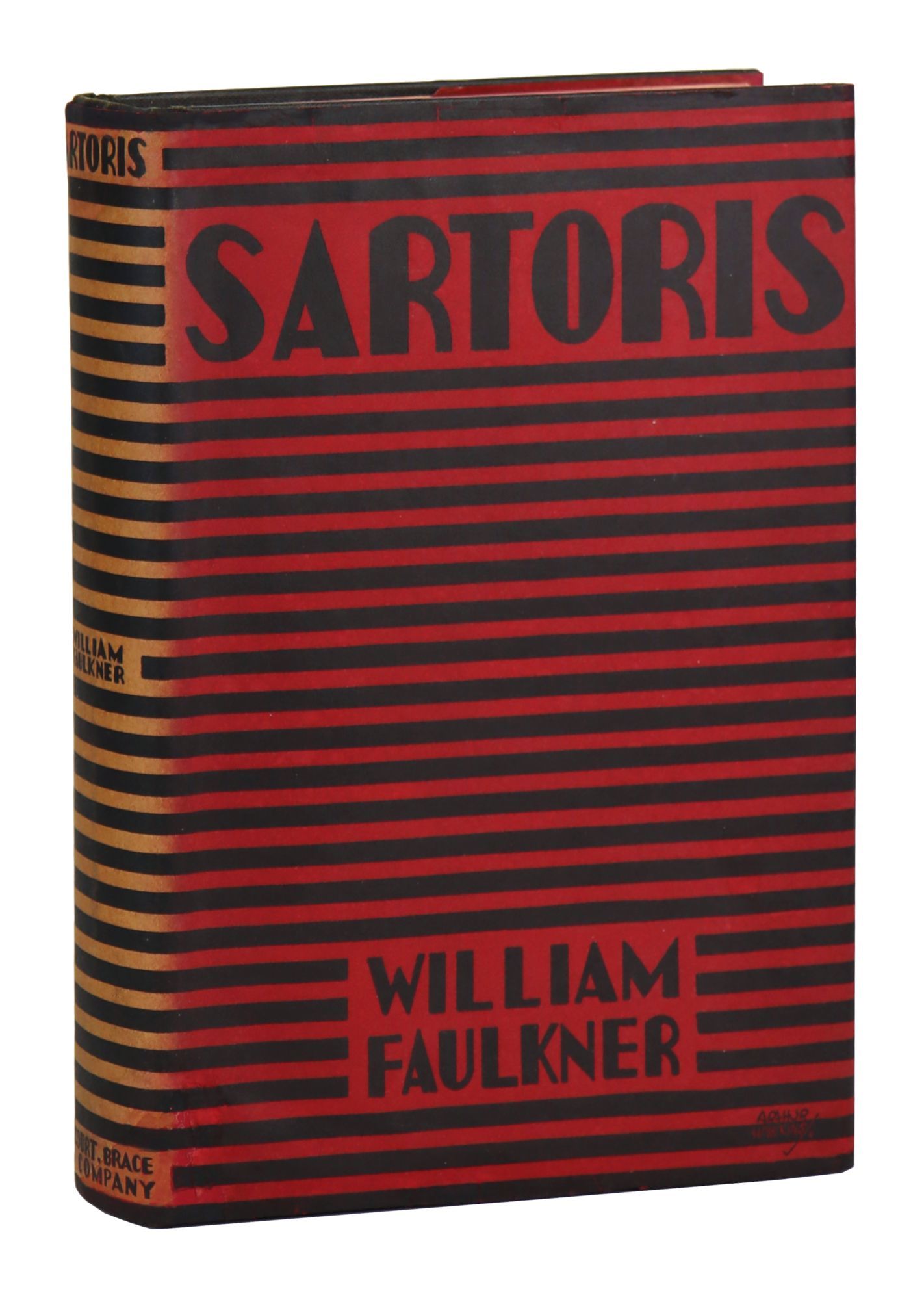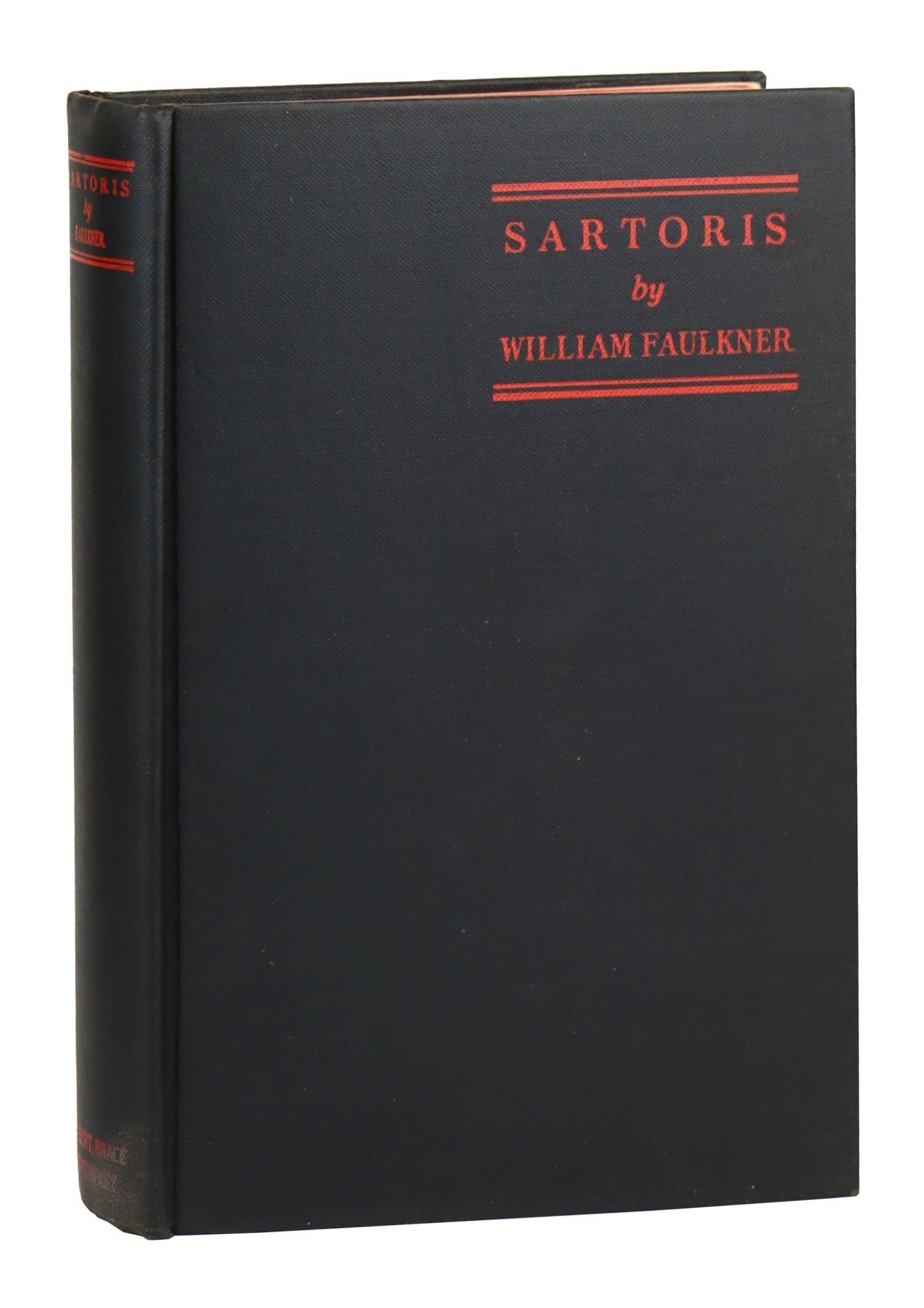 New York: Harcourt, Brace and Company, 1929. Very Good +/Very Good. New York: Harcourt, Brace and Company, 1929. First Edition with no additional printings listed. Octavo; 380pp. Printed red and black dust jacket, repaired. Black cloth stamped in red; top edge stained red. Price clipped dust jacket faded along spine, showing extensive professional repairs with color in-filling along edges and folds. Boards lightly shelfworn with a patch of staining to base of spine; binding sound and pages unmarked; A Very Good or better copy in a Very Good restored dust jacket. Faulkner's first set of tales set in Yoknapatawpha County.