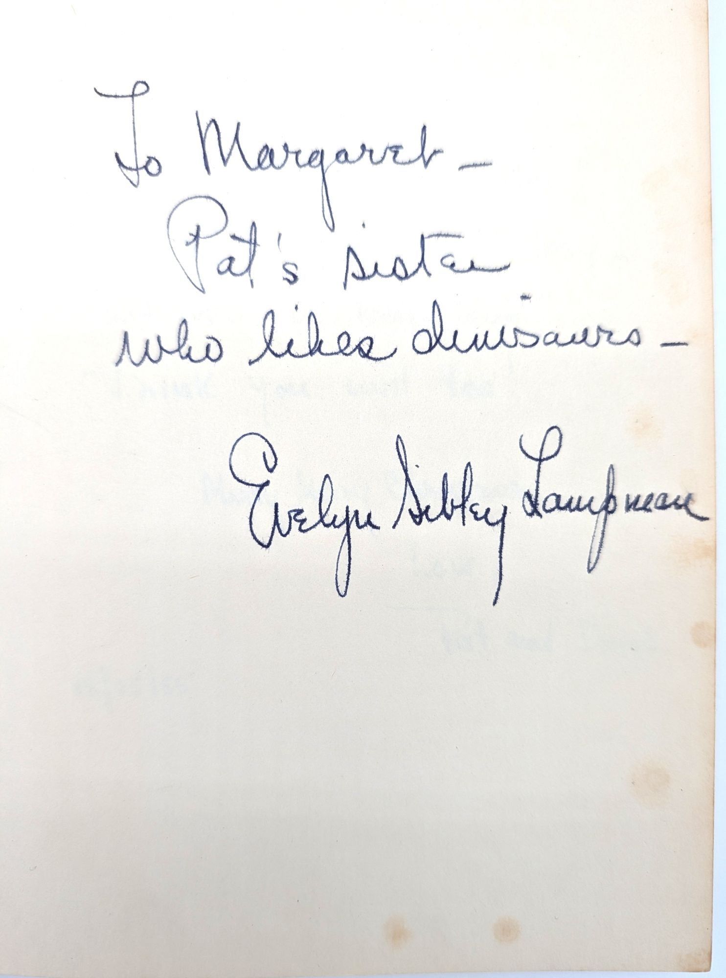 Garden City: Doubleday & Company, Inc, 1962. Early printing and first edition. Hardcover. Very Good/Very Good. 218; 232pp. Octavo [21.5 cm] Volume 1: Pictorial brick-red publisher's boards with black lettering on the spine (slight shelfwear, contemporary Christmas gift inscription on front flyleaf). In the dust jacket, with cover art by Buel (price-clipped, minor edgewear, light creasing, periodic small closed tears and chips to the edges). Volume 2: Bright green publisher's cloth, gilt stamped vignette on front board, gilt lettering on spine (very subtle edgewear, minor warping to rear board, contemporary gift inscription and Christmas-themed sticker on the front free endsheet below author's inscription). In the dust jacket, with wraparound cover art by Galdone. The jacket is price-clipped, moderately edgeworn, and has a couple of short closed edge tears. Inscribed by Lampman on the front free endpapers. The first inscription states: "To_____- / Pat's sister / who likes dinosaurs- / Evelyn Sibley Lampman." The second inscription, dated in the year of publication, states: "To_____- who / has waited as / long as Pat! / Best wishes / Evelyn Sibley Lampman / Christmas, 1962."