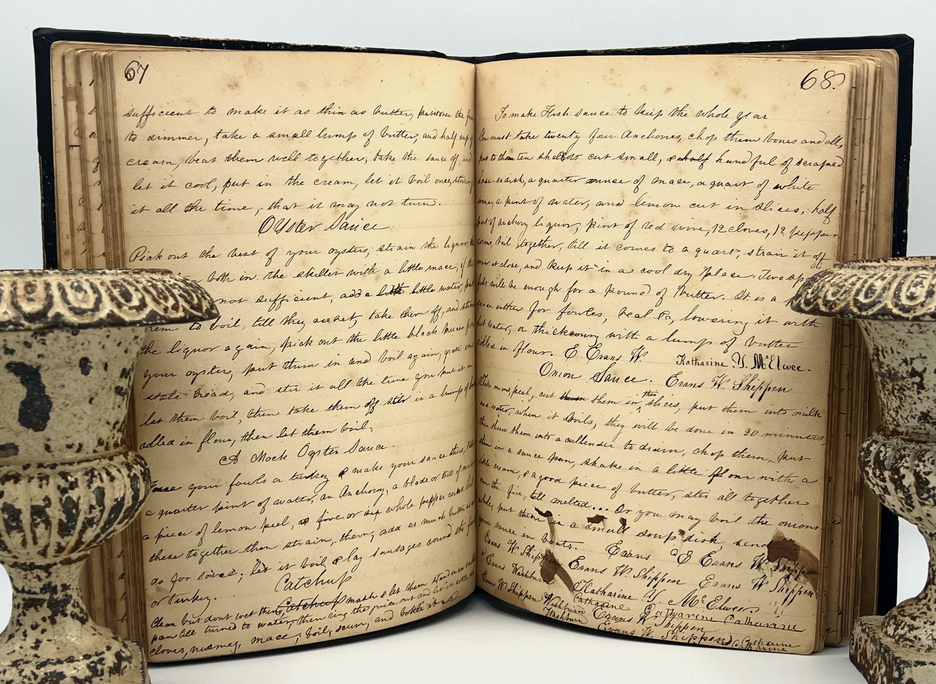 The manuscript frequently mentions Evans W. Shippen (18301899) and Katherine W. McElwee (c.18351899), who married in 1852. Evans was an iron foundry owner and, at his death, held significant real estate in Philadelphia and the surrounding area, including Meadville, Pennsylvania. Their social standing strongly suggests they employed capable household staff and entertained guests regularly. Notably, the 1860 census records show a servant named C. Gallagher28 years old and Irish-bornwas employed in the household at that time.