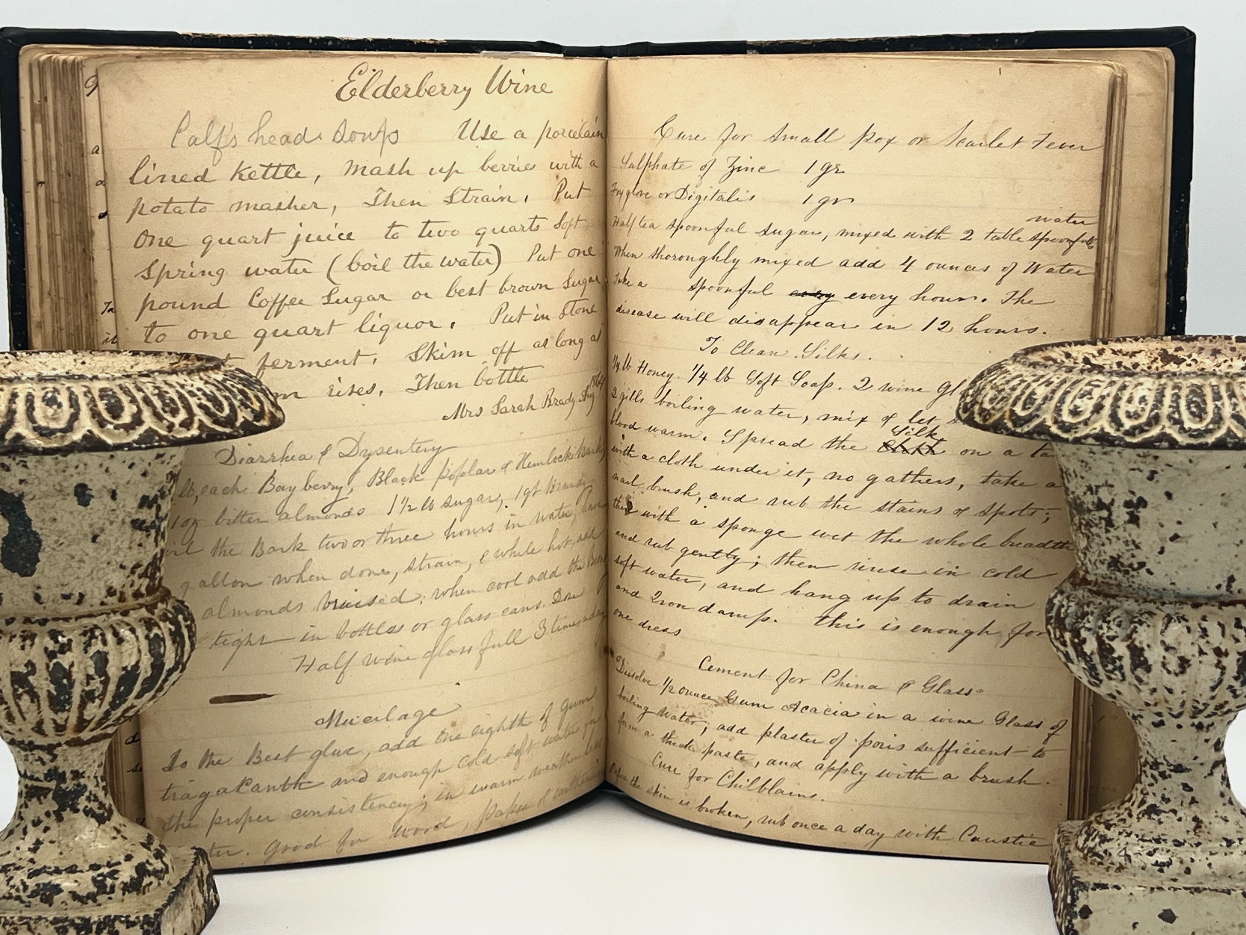Methods for curing ham, beef, and pork, Baking a pig, Preparing Scotch Collops, Corning beef, Dressing a calfs head turtle fashion, Making mutton chops, Roasting goose or duck, Barbecuing a sheeps head, Curing shad, Producing homemade vinegar, Pickling barberries, A wealth of recipes for cakes, biscuits, breads, muffins, cookies, as well as sauces, preserves, flummeries, jellies, & creams, Directions for making cheese, yeast, beer, cider, wine, cordials, brandy, and mead,Instructions for preparing paints, washes, and several household remedies, and so much more.