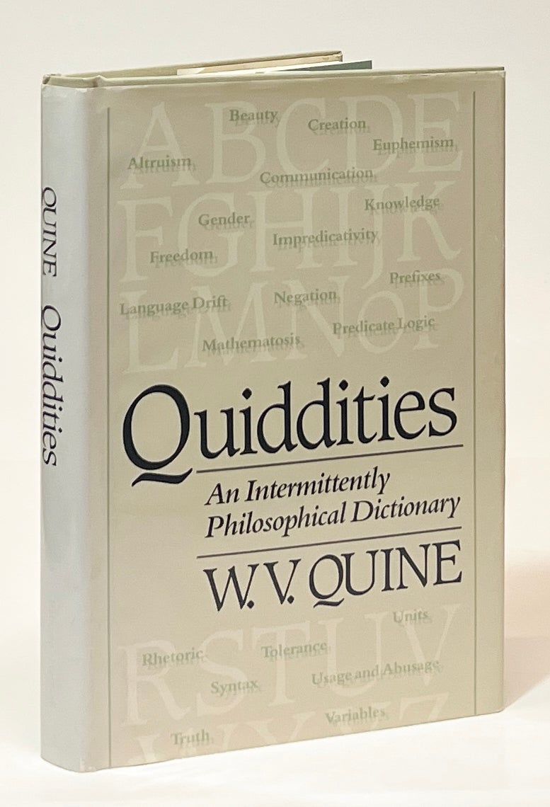 Cambridge: The Belknap Press of Harvard University Press, 1987. First Edition. Hardcover. Fine/Near Fine. Fine in a Near Fine jacket, unclipped ($22.00), bumped at the edges, faded a shade at the spine. Grey cloth with silver gilt lettering on the spine and front board. Square and firmly bound, clean internally. Quine's work covering a wide range of eighty topics.