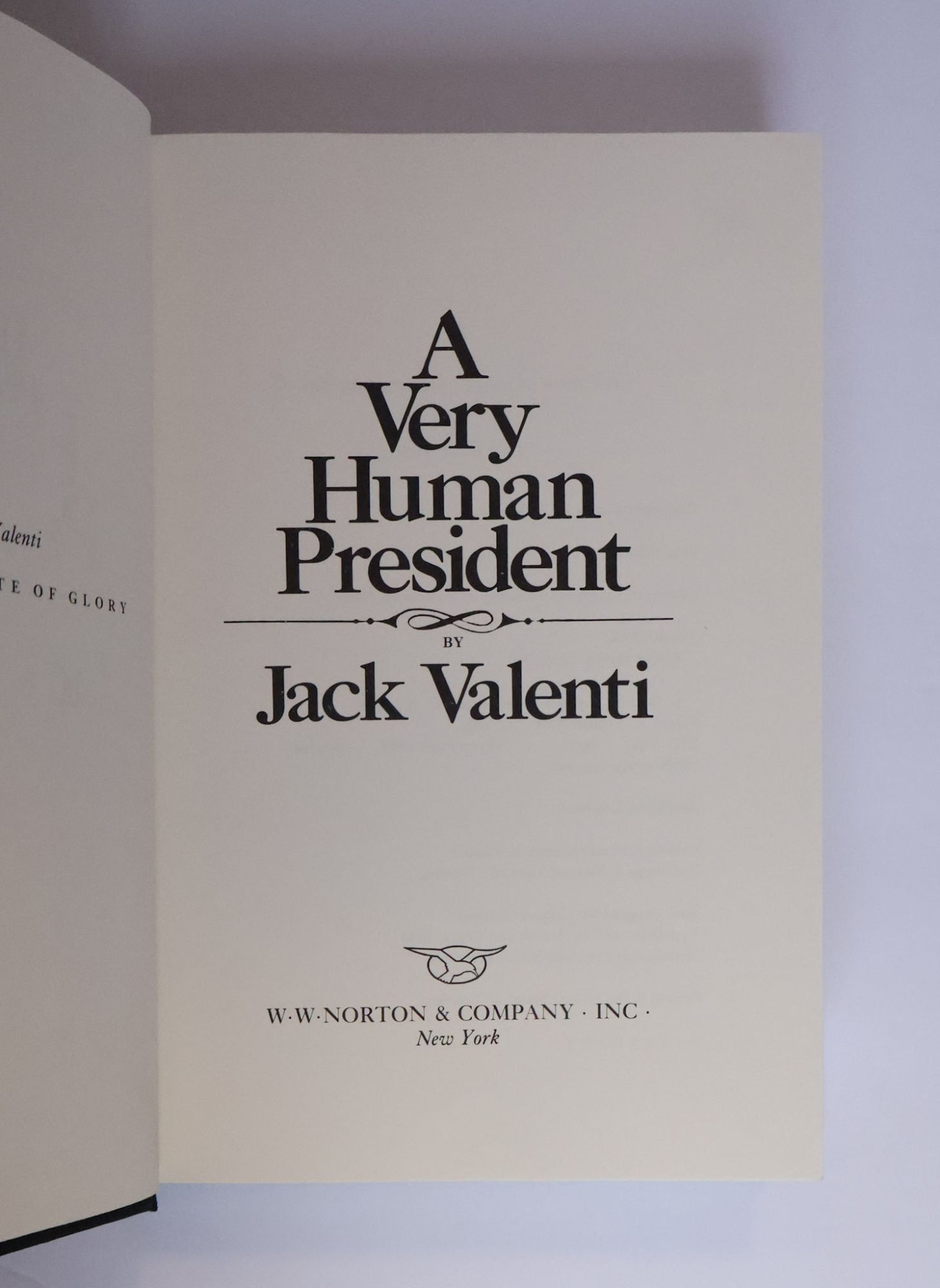 New York: W. W. Norton & Company, Inc, 1975. First Edition, First Printing. Hardcover. Octavo, xii, 402 pages. In Very Good minus condition with a Good dust jacket. Spine white with black and blue lettering. Dust jacket protected with a mylar covering, price cut. General shelf wear. Heavy foxing to dust jacket. Foxing to edges of dust jacket. Inscribed by Valenti on front free endpaper. Shelved in Room F. 1406555. Special Collections.