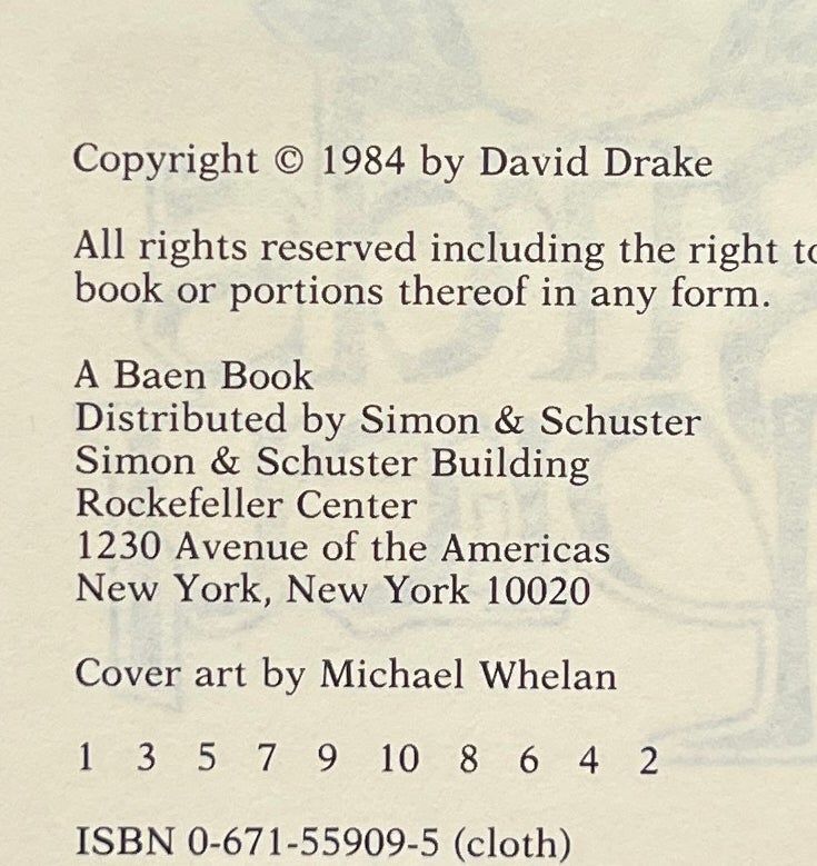 New York: Baen Books, 1984. First Edition. Paperback. Very Good. Signed by Drake on a label affixed to the half-title. Very Good. Wraps rubbed and lightly bumped, a faint crease down the spine. Square and firmly bound, clean internally. Drake's historical fantasy about one secret agent trying to save the falling Roman Empire.