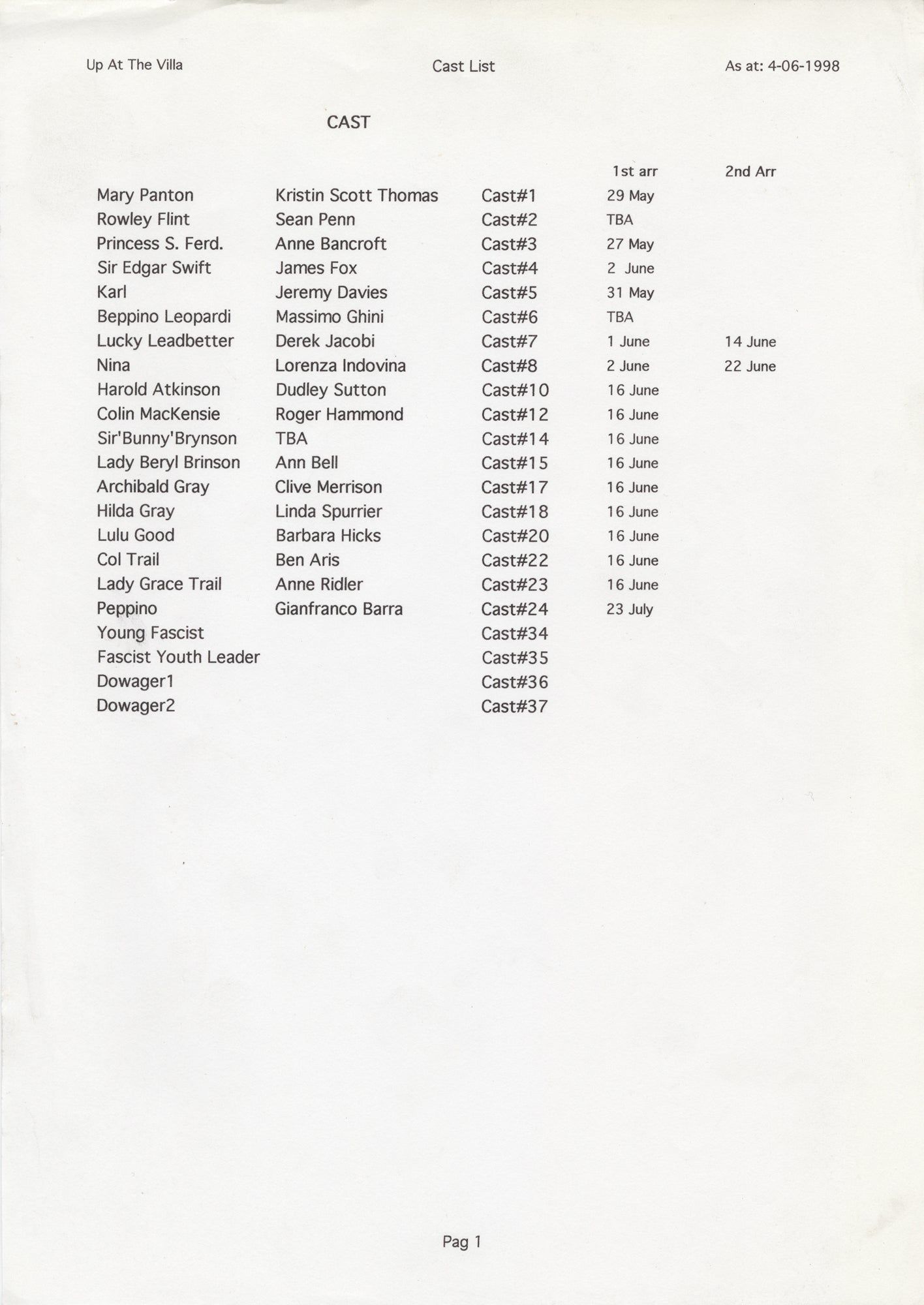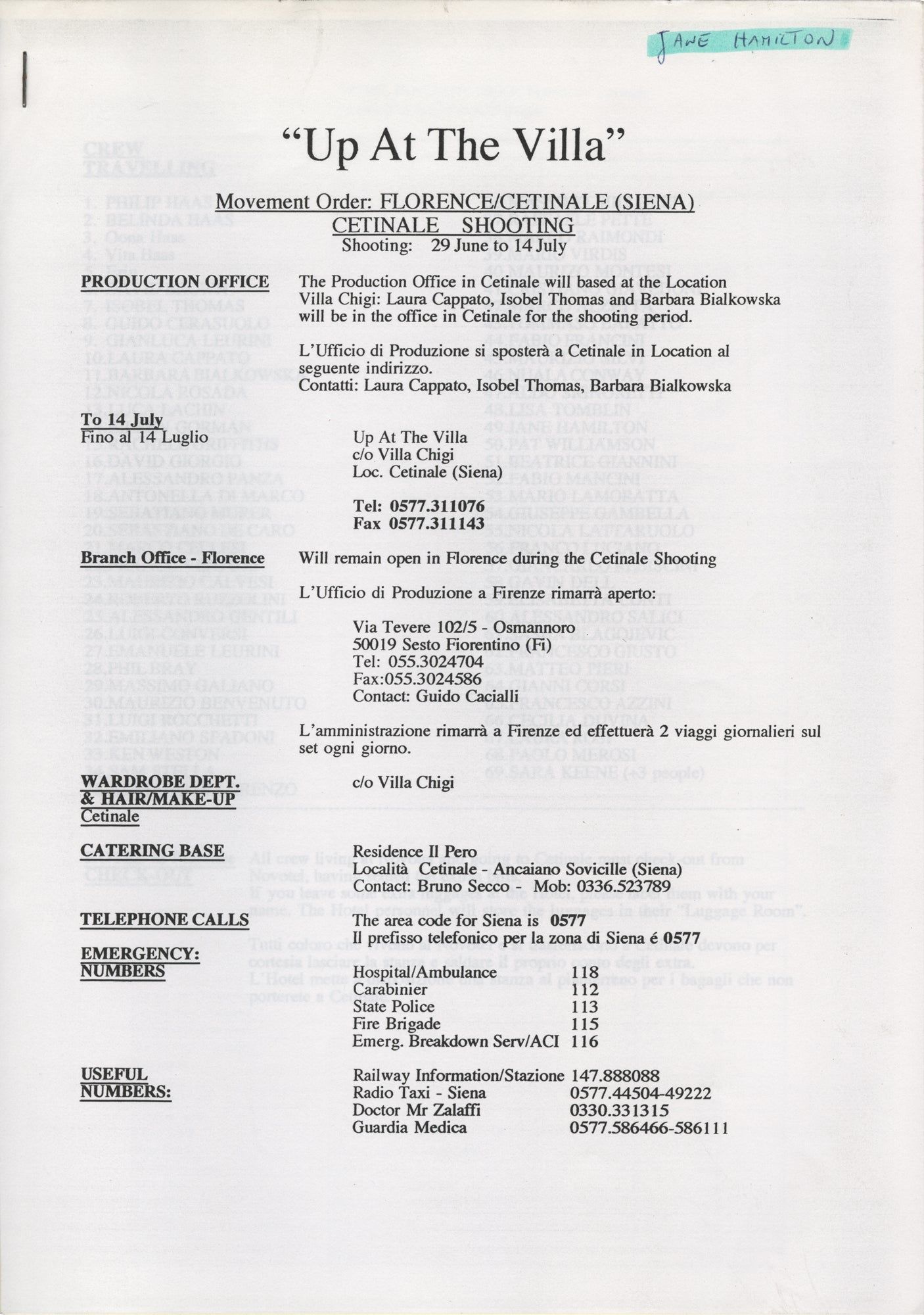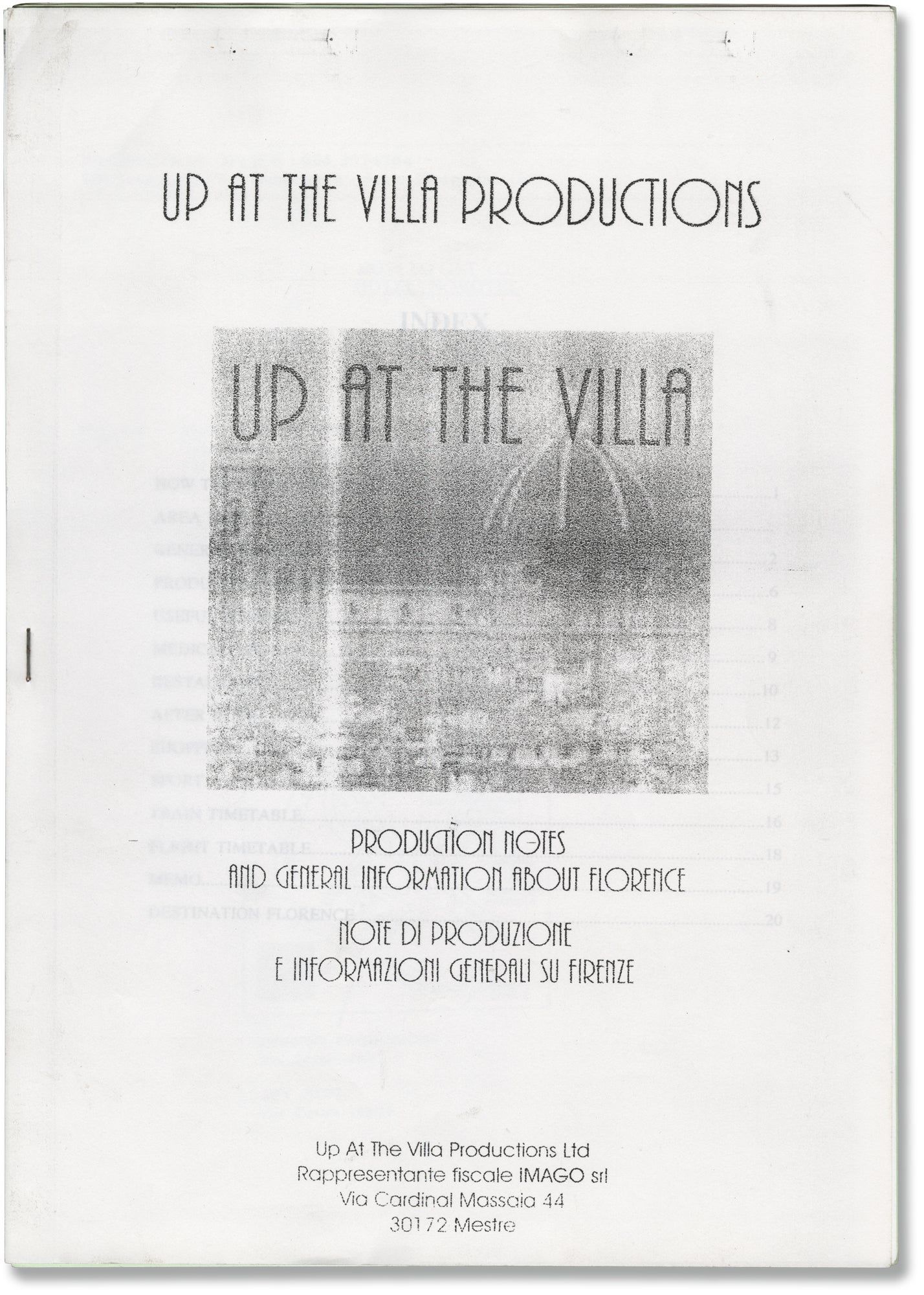 Up at the Villa (Archive of working material from the 2000 film, including an annotated script and production documents)