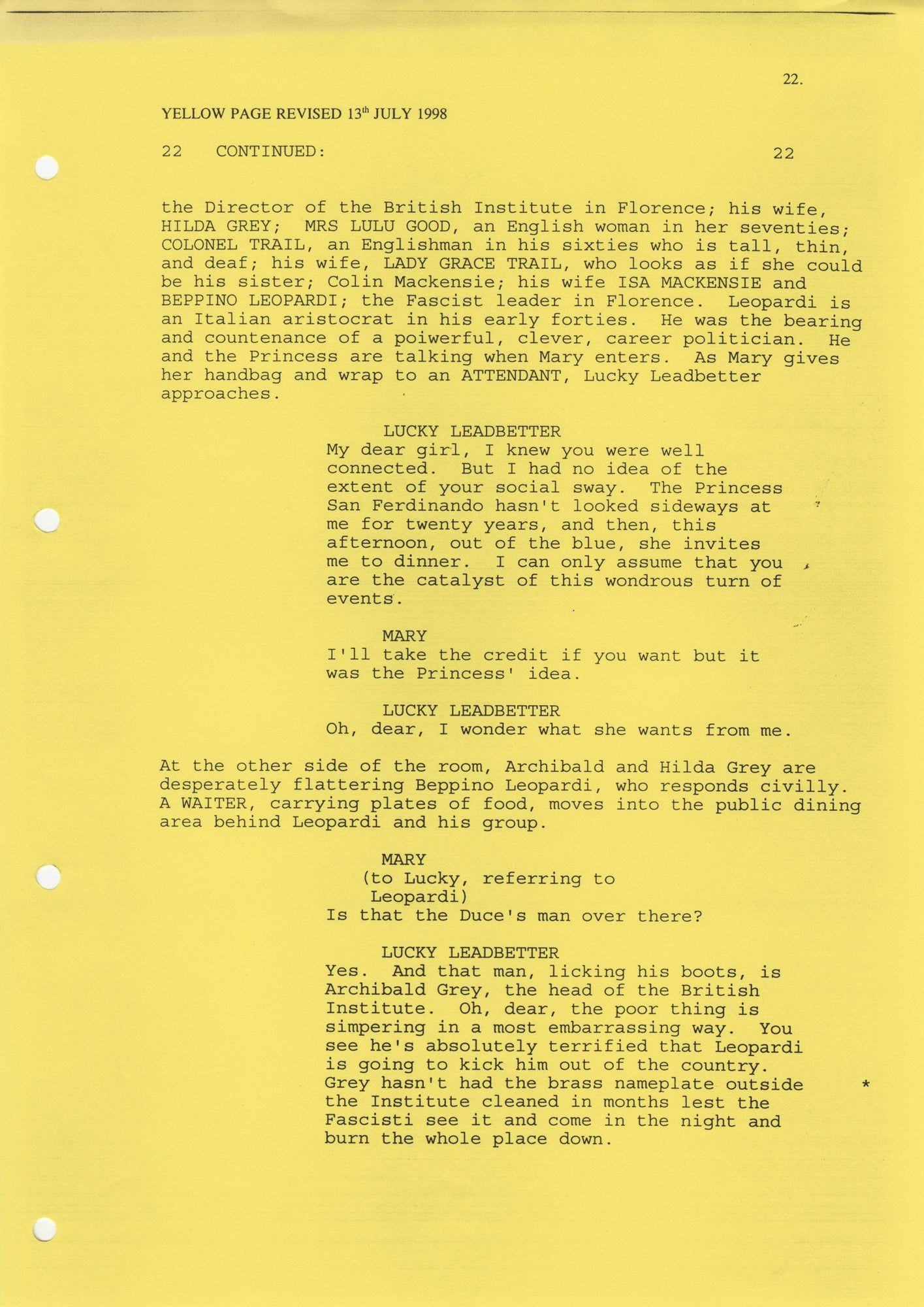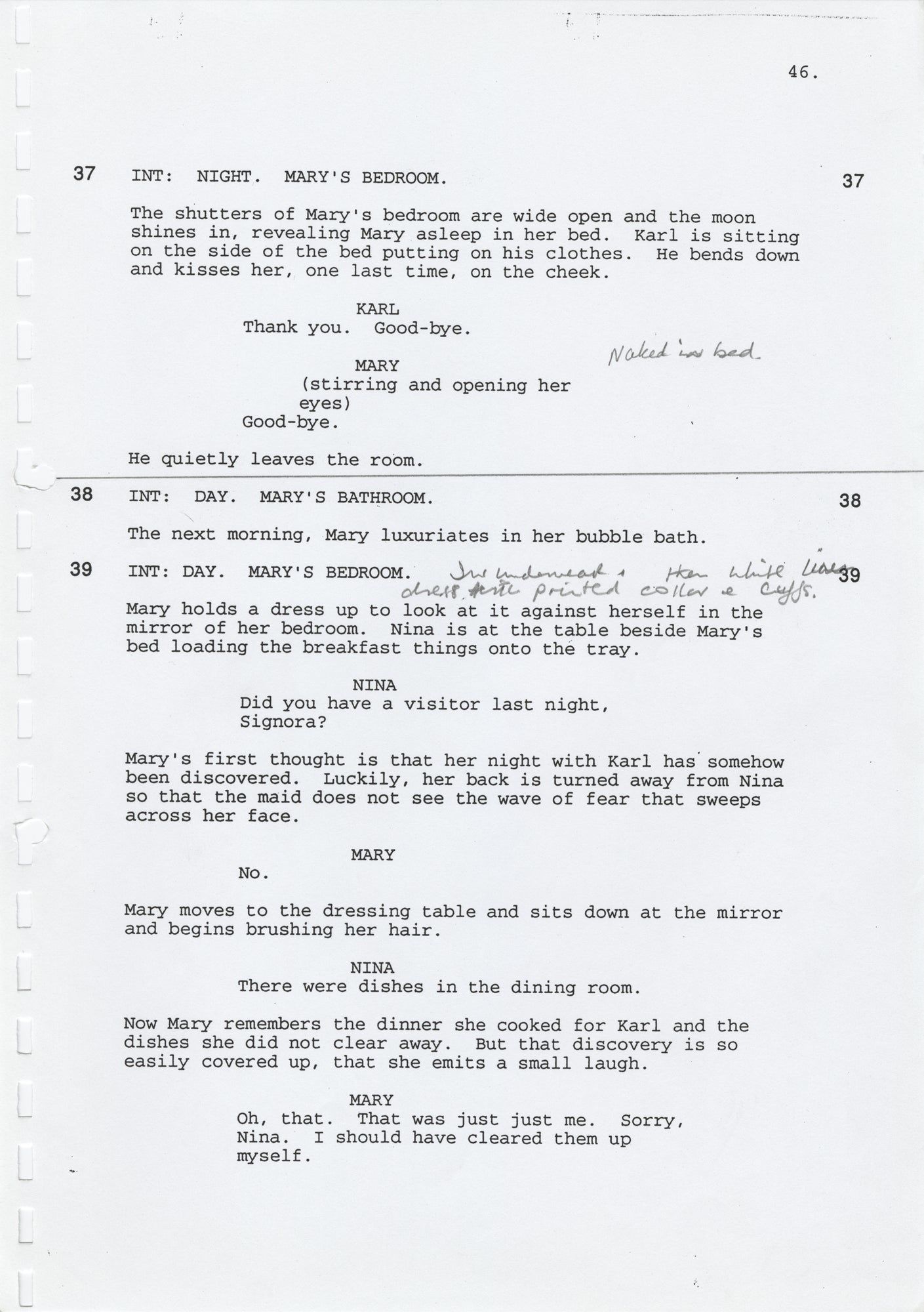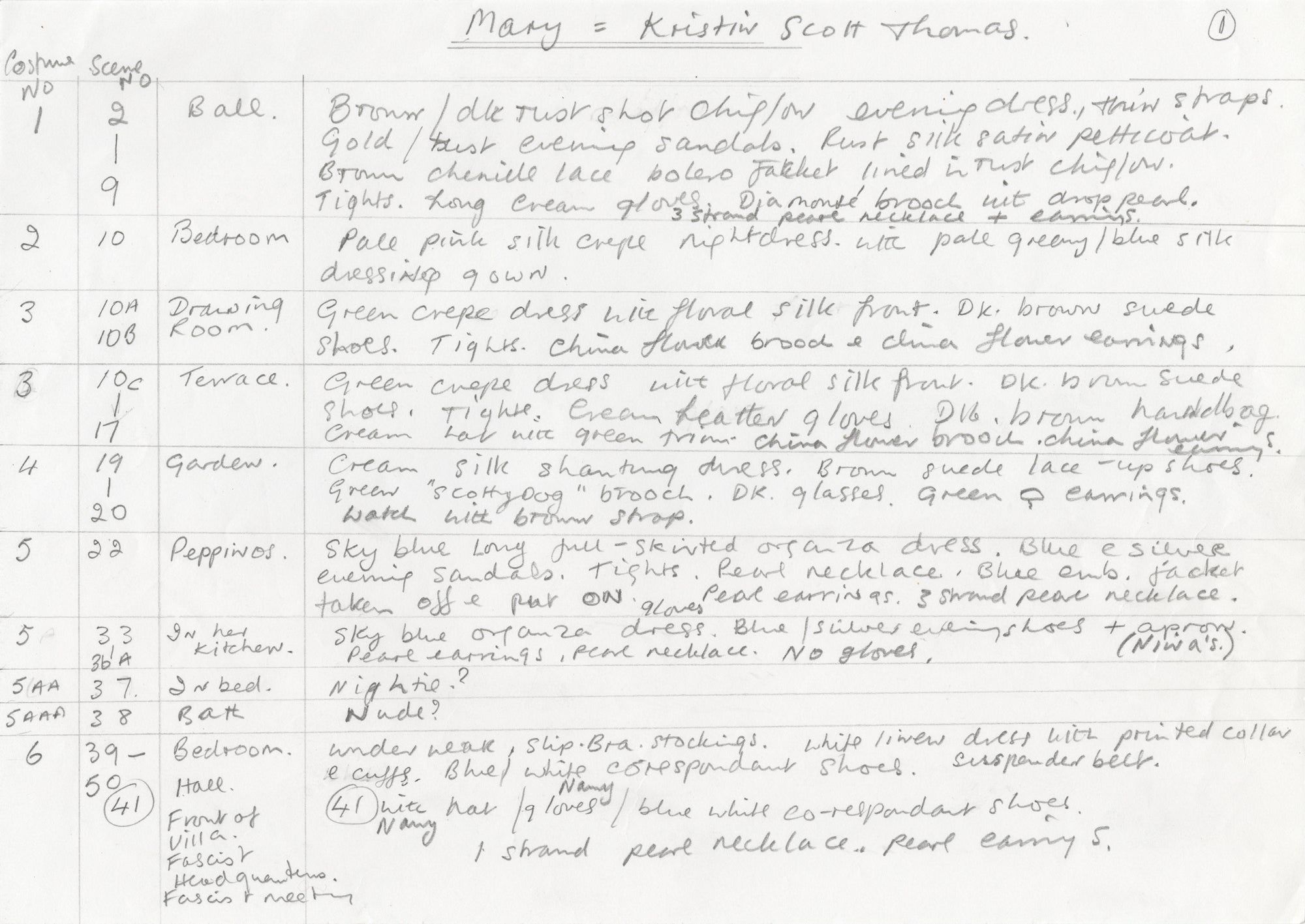 Up at the Villa (Archive of working material from the 2000 film, including an annotated script and production documents)