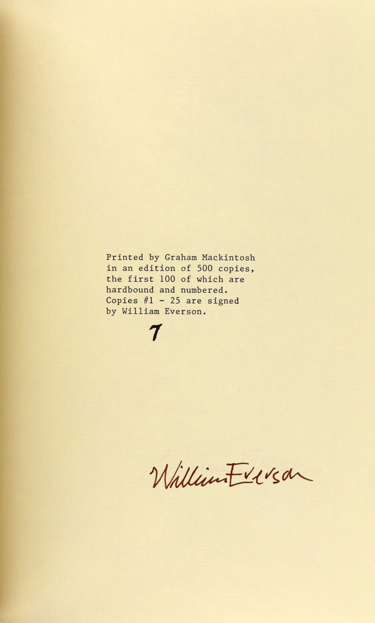 Signed by Everson without inscription on colophon. Bookseller's catalogue featuring 222 items.