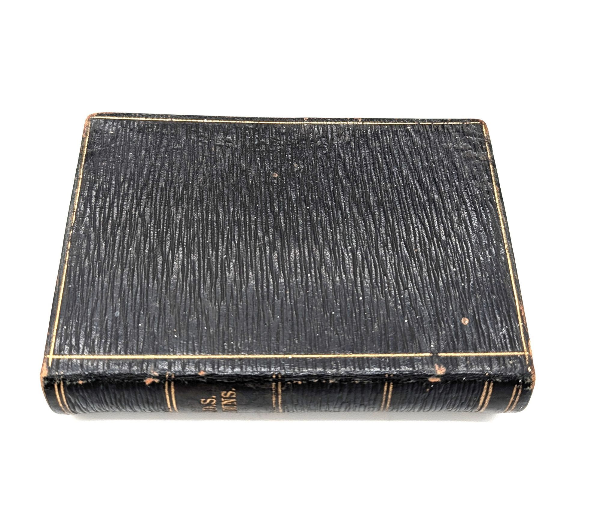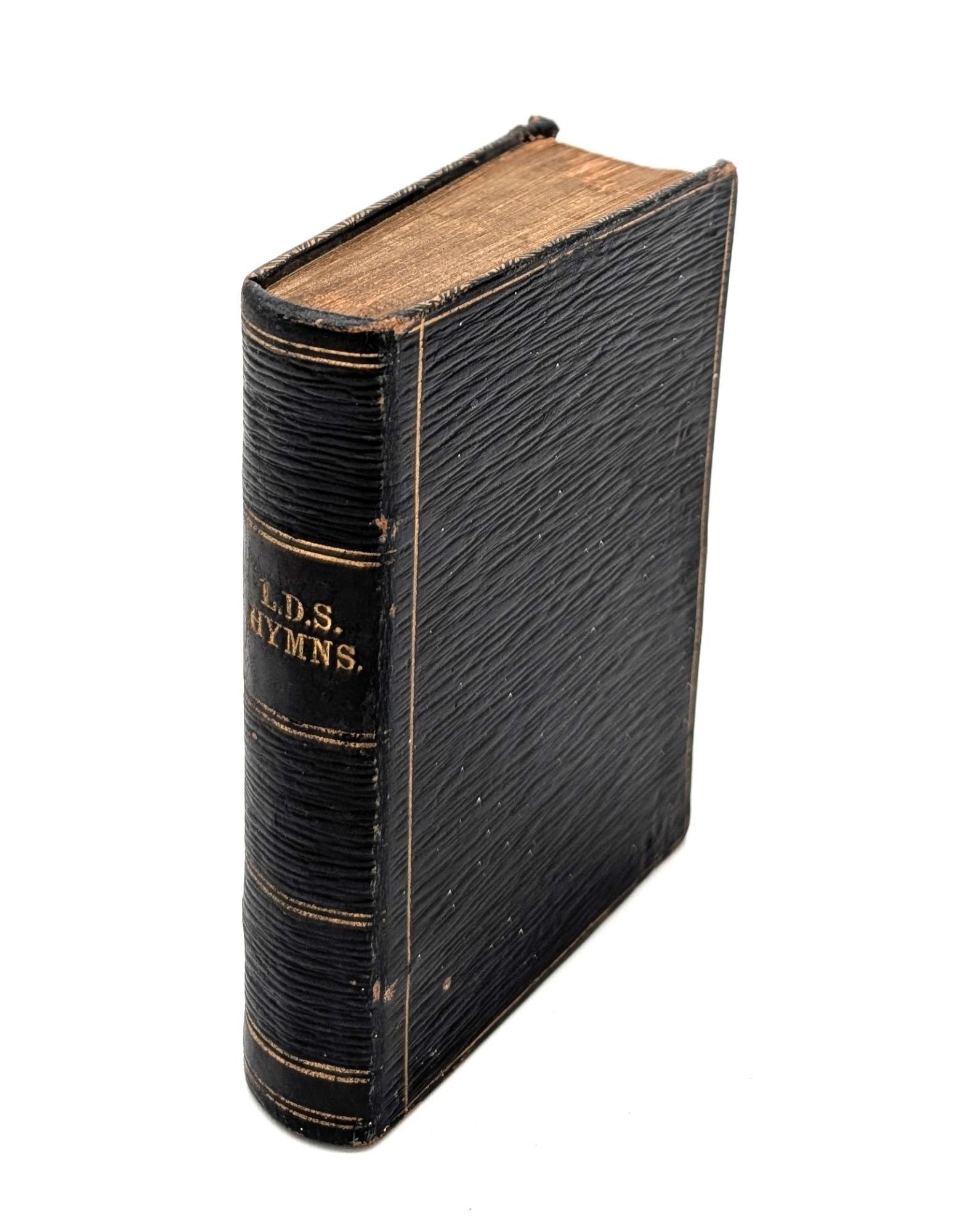 Liverpool: Printed and Published by John Henry Smith, 1884. Eighteenth Edition. Leather bound. Very Good. 432pp. Vigesimoquarto (24mo) [12 cm] Full black striated leather, with single gilt ruled borders on the covers, spine compartments with double-ruled gilt stamped borders, and the title [L.D.S. Hymns] in gilt on the backstrip. All edges gilt. Turn-ins gilt. Pale yellow endpapers. Light rubbing to the extremities. Numerous tiny speckles to front board. Text block cracked at p. 431. Minor moisture stains on the rear flyleaf and rear endpaper along the edges. Page number at the head of p. 266 printed as "66". Flake 1777. From the Preface to the Eighteenth Edition-