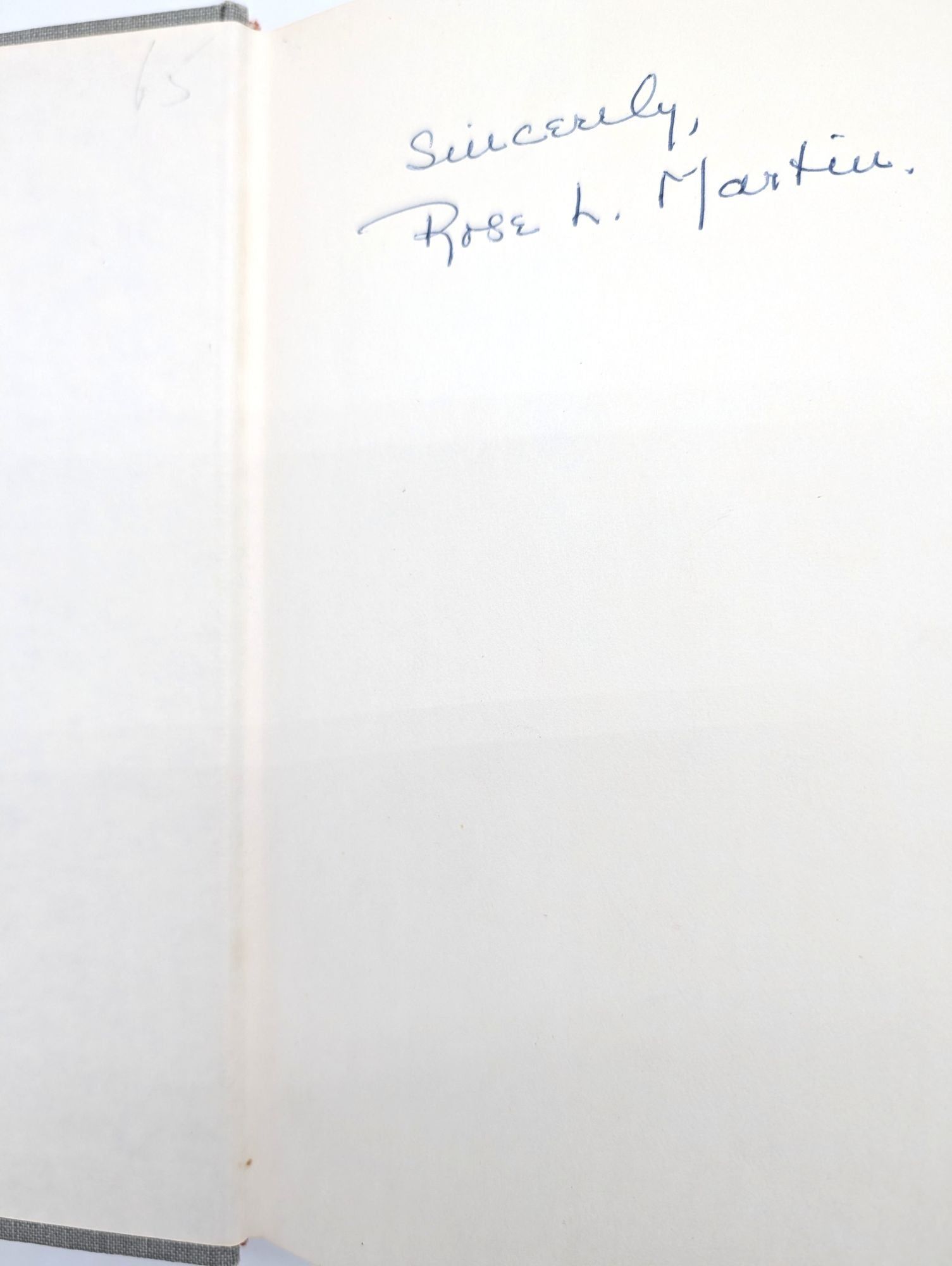 Boston and Los Angeles: Western Islands Publishers, 1966. Second printing. Hardcover. Very Good/Very Good. SIGNED. 566pp. Octavo [22 cm] Gray cloth over boards, with very light bumping and rubbing to the extremities. In the dust jacket, with moderate surface wear, rubbing and a bit of creasing to the edges, and periodic small closed tears and chips in the edges. The deepest tear is closed, measuring 1" long. Inscribed by the author, "Sincerely, Rose L. Martin," on the front free endpaper.