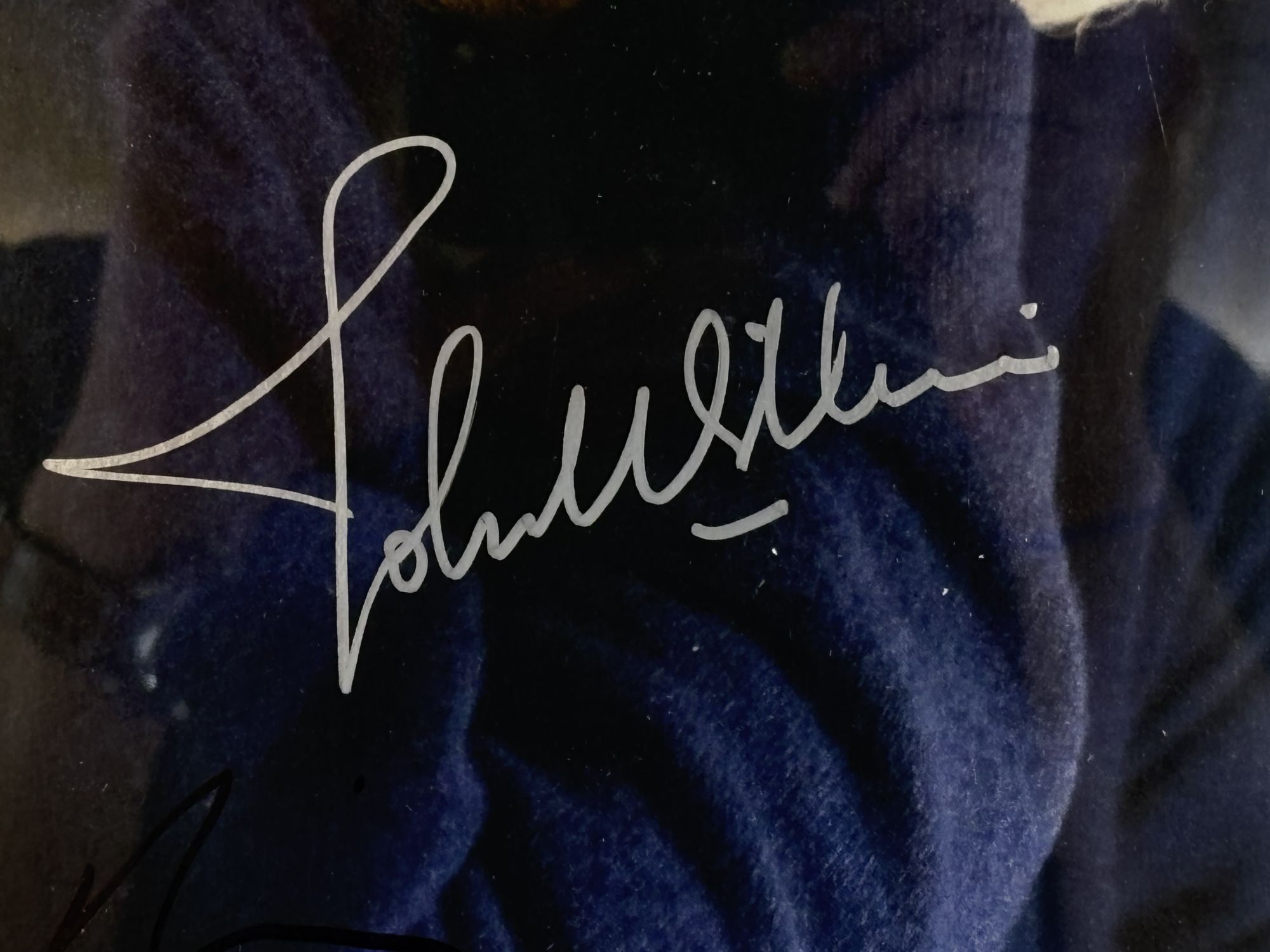 Washington, D.C.: The Kennedy Center, 2022. Original National Symphony Orchestra poster celebrating 90th birthday of renown composer, John Williams. Poster is signed by seven individuals, including the following: John Williams, Steven Spielberg, Yo-Yo Ma, Daisy Ridley, Stephane Deneve, and Jackie Joyner-Kersee (with one unidentified signee). Matted in frame measuring 19.5 in. x 28 in. Shelved at Dupont (SJF). 1406641. Shelved Dupont Bookstore.
