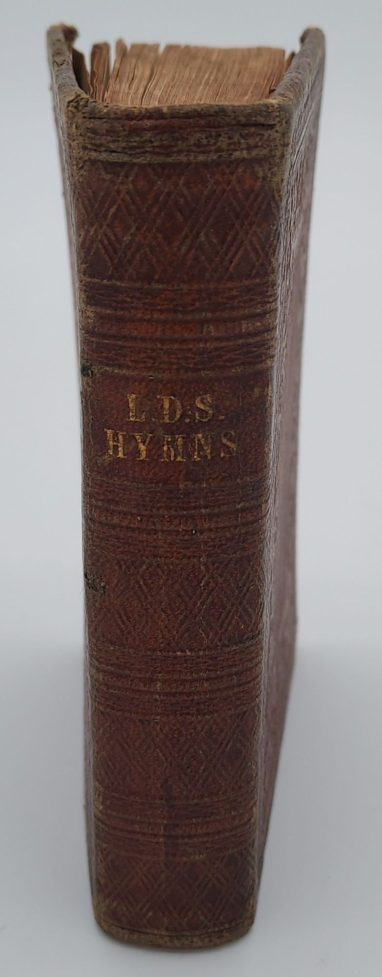 Liverpool and London: Albert Carrington; L.D. Saints' Book Depot, 1871. Fifteenth edition. Leather Bound. Very Good. 432pp. Vegisemo-Quarto (24mo) [12 cm] Full brown leather with decorative embossing to spine and boards. 'L.D.S. HYMNS' in gilt on backstrip. Preface to the Fifteenth Edition by Albert Carrington, dated September 19th, 1871. Extremities moderately rubbed. Underlying boards peeking through at several of the corners. Barely perceptible moisture stain to the bottom edge of the text block. Pastedowns darkened along the edges. A couple of small, light stains on pp. 274 and 275. Very periodic neat folding to the very top fore-edge corners of the pages. Small open tear to bottom margin of p. 429/30. Flake/Draper 1773. Chism 91. In his bibliography "A Selection of Early Mormon Hymnbooks 1832-1872: Hymnbooks and Broadsides from the First 40 Years of the Church of Jesus Christ of Latter-day Saints" (Tucson, Arizona, 2011), Shane Chism estimates 1871 Liverpool editions of the hymnbook at runs of 2,000 to 3,000 copies, though no exact records have been found. The fifteenth edition differs from the thirteenth edition in the addition, at the conclusion of the volume, of fourteen hymns. These fourteen hymns are reprinted in the October 3, 1871 issue of the Millennial Star.