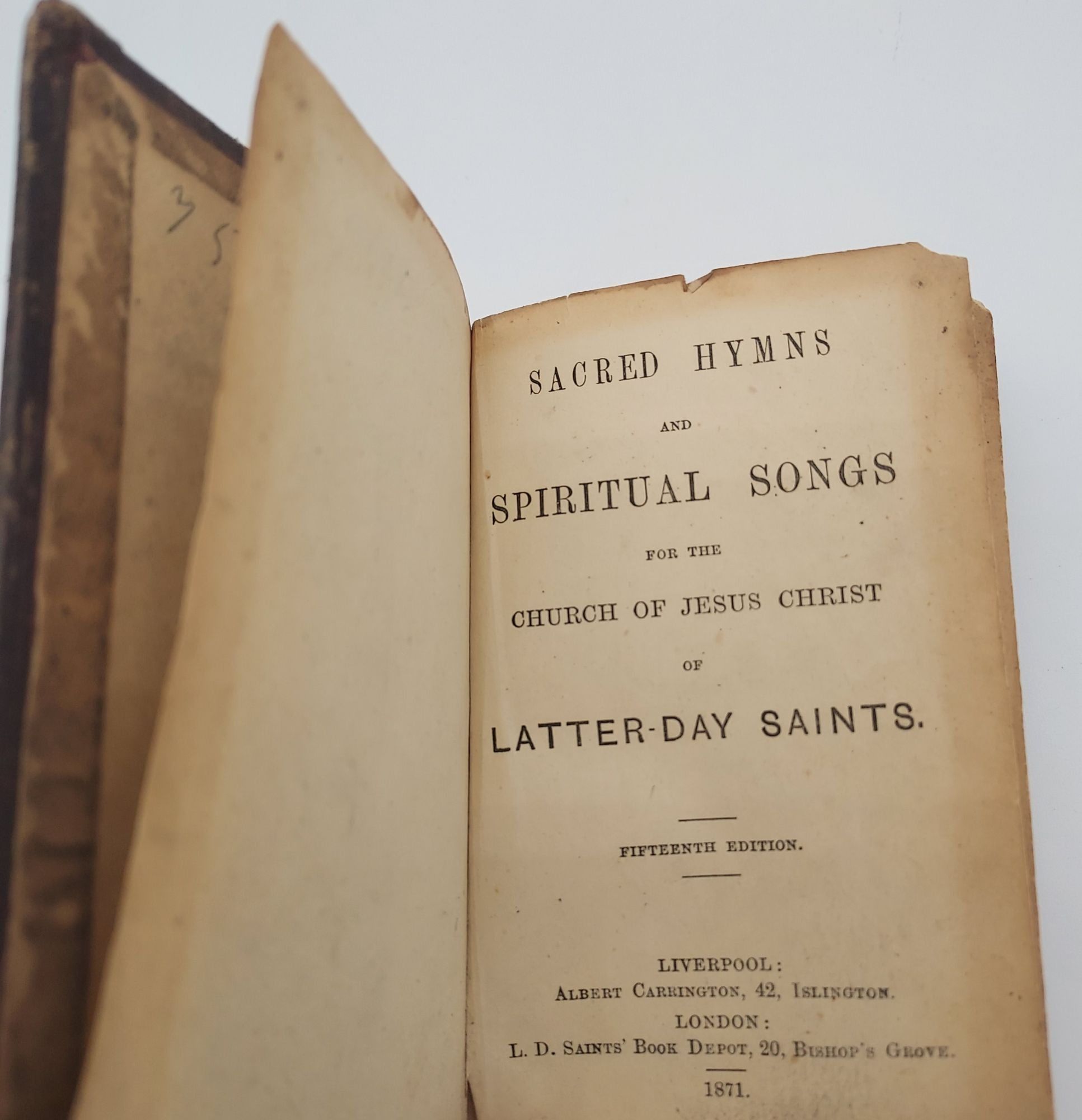 Although a reprint of the fourteenth edition (Chism 88), there are two hymn nos. 323. This Liverpool edition was published in the same year as the first LDS hymnbook was published in Utah by George Q. Cannon.