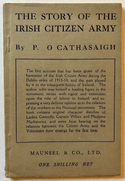 Dublin: Maunsel & Co., Ltd, 1919. Wrappers. Very Good +. A crisp, presentable copy of the 1919 1st edition, authored pseudonymously by Irish playwright Sean O'Casey (1880-1964). Solid and VG to VG+ in its original stapled wrappers, with just a touch of wear at the foot of the spine. 12mo, 72 pgs. (From the front cover: "The first account that has been given of the formation of the Irish Citizen Army during the Dublin strike of 1913-14, and the part played by it in the subsequent history of Ireland.").
