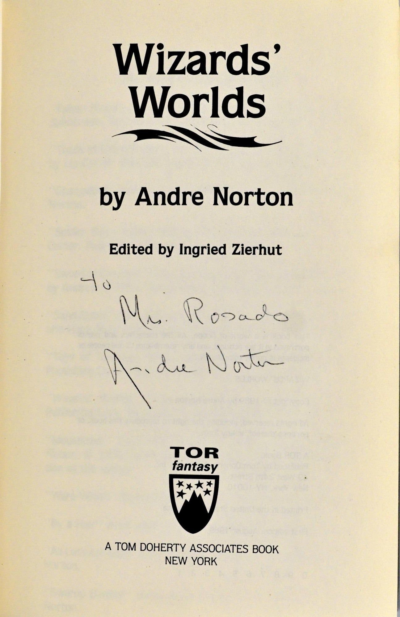 New YOrk: Tor Books, 1989. First Edition. Hard Cover. Very Good binding/Very Good dust jacket. Sigend. Octavo; in black cloth-covered boards, with dustjacket; the binding is cocked and the endpapers have discoloration; the dustjacket has not~~This First Edition copy is signed by Andre Norton on the title page: “To | Mrs. Rosado | Andrew Norton”..~~. Very Good binding / Very Good dust jacket.