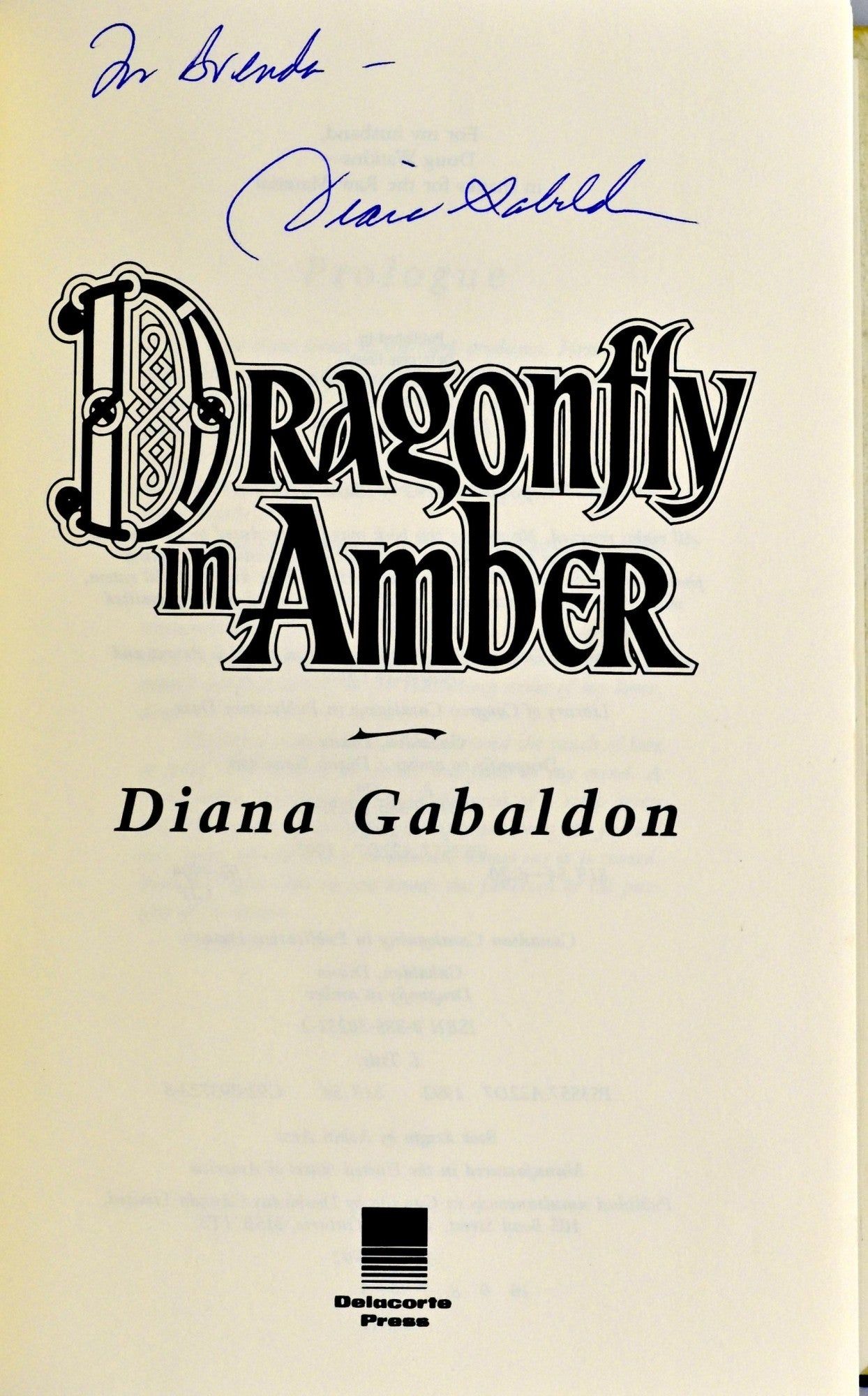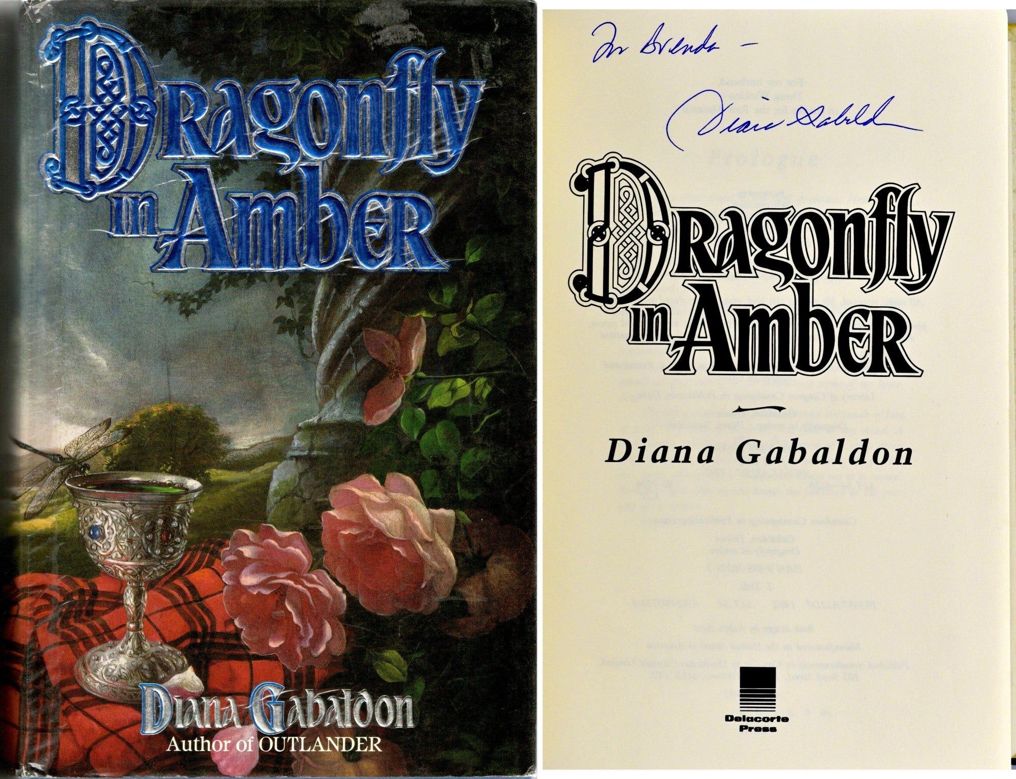 New York: Delacorte Press, 1992. Fifth Printing. Hard Cover. Near Fine binding/Very Good dust jacket. Large octavo; in the publisher’s blue paper -covered boards backed in blue cloth; the dustjacket has delamination at the front gutter beginning at the rear; the dustjacket has not been price-clipped.; the leading edge of the textblock has light spotting, perhaps from a spill.~~This copy is signed with a personal inscription by Diana Gabaldon on the title page. Near Fine binding / Very Good dust jacket.