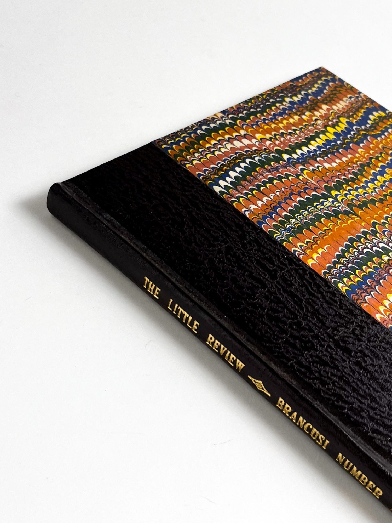 Additional contributors include Iwan Goll, Mina Loy, Kenneth Burke, Clement Pansaers, and Mary Butts. Special mention must also be made of Elsa von Freytag-Loringhoven's "Criticism of William Carlos William's 'Kora in Hell'"; context is supplied by Margaret Anderson's autobiography, which records the Baroness's "tragic spring" of unrequited love for the poet. Williams unwittingly lent false hope to Loringhoven by offering a basket of peaches in tribute to her own poems: "He brought me peaches and now he won't look at me. Not just peaches—they were ripe peaches. Are American men really so naïve as that?" 9.5'' x 7.5''. Modern quarter-bound marbled papers. Original wrappers bound in. 112 pages. Touches of shelfwear. Faint toning to pages. Else bright and clean.