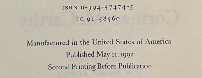 New York: Alfred A. Knopf, 1992. Hardcover. Near Fine/Near Fine. Second Printing Before Publication. Near Fine in a Near Fine jacket, unclipped ($21.00), bumped at the edges. Quarter black cloth with black paper on the boards, lightly bumped at the corners. Square and firmly bound with a green topstain, clean internally. The first book in McCarthy's acclaimed Border Trilogy. Winner of the National Book Award and adapted into a film by Billy Bob Thornton starring Matt Damon and Penelope Cruz.