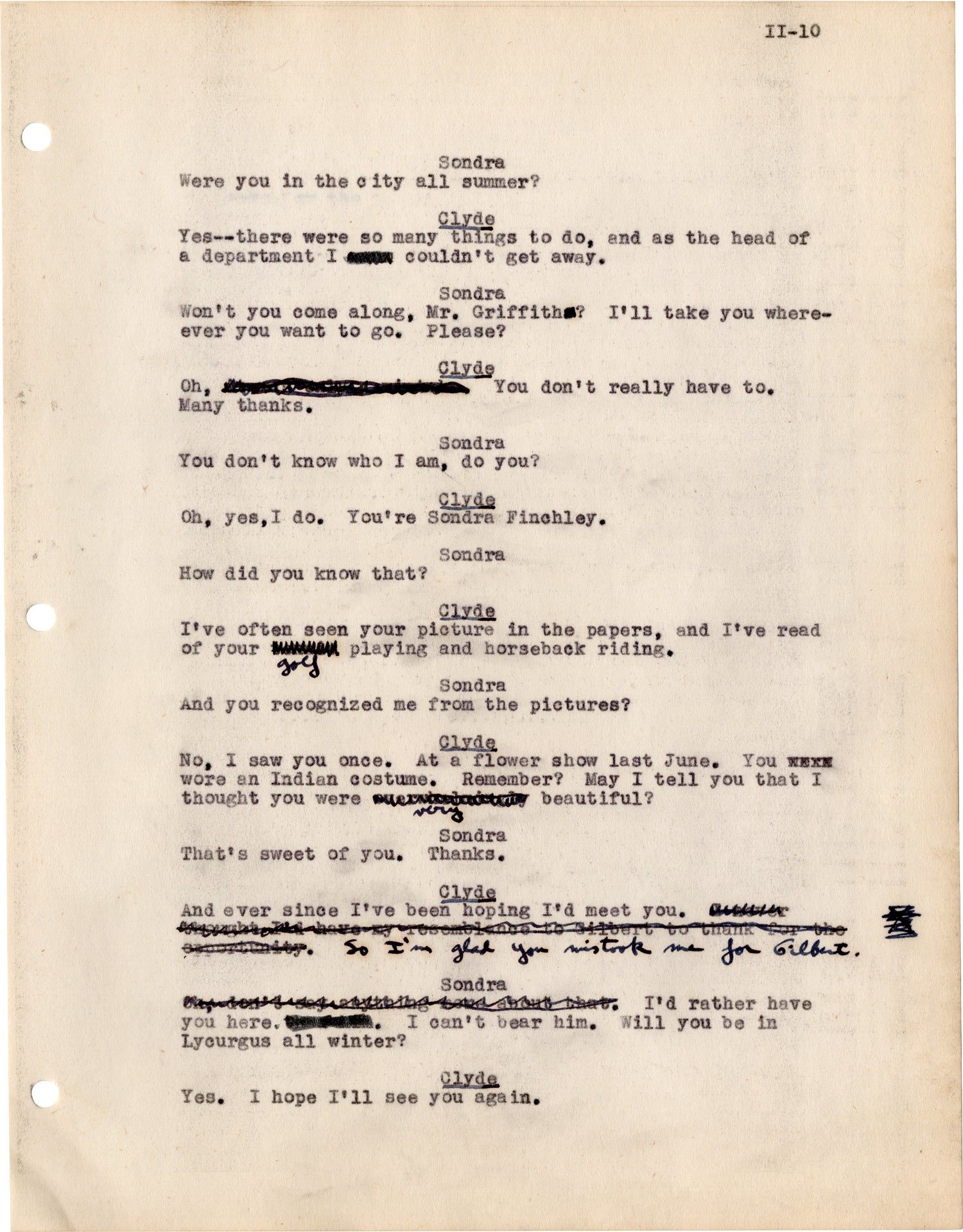 Green untitled wrappers. Title page present, with credits for playwrights Erwin Piscator and Lena Goldschmidt and author Theodore Dreiser. 81 leaves, with last page of text numbered III-29. Carbon typescript copy, rectos only. Pages Near Fine, wrapper Very Good plus, bound internally with three silver brads.
