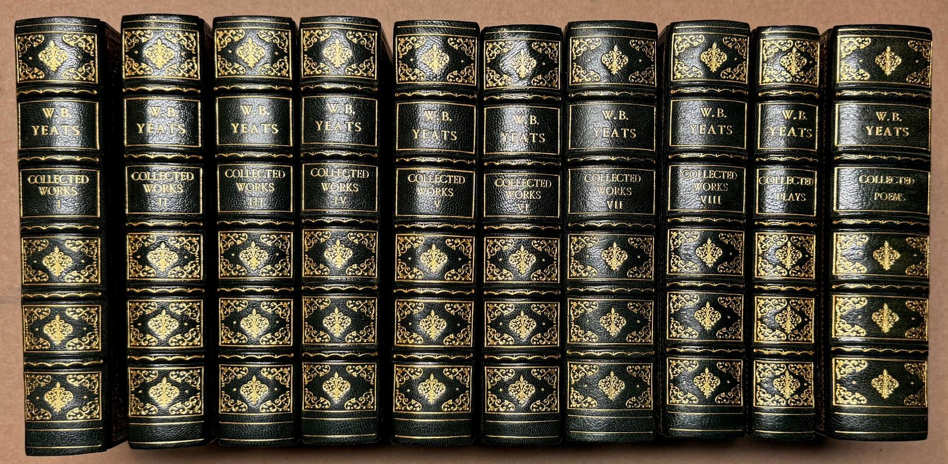 First collected edition of the works of Yeats in 8 volumes, plus 2 volumes (later printings, but bound the same) of Collected Plays & The Poems.