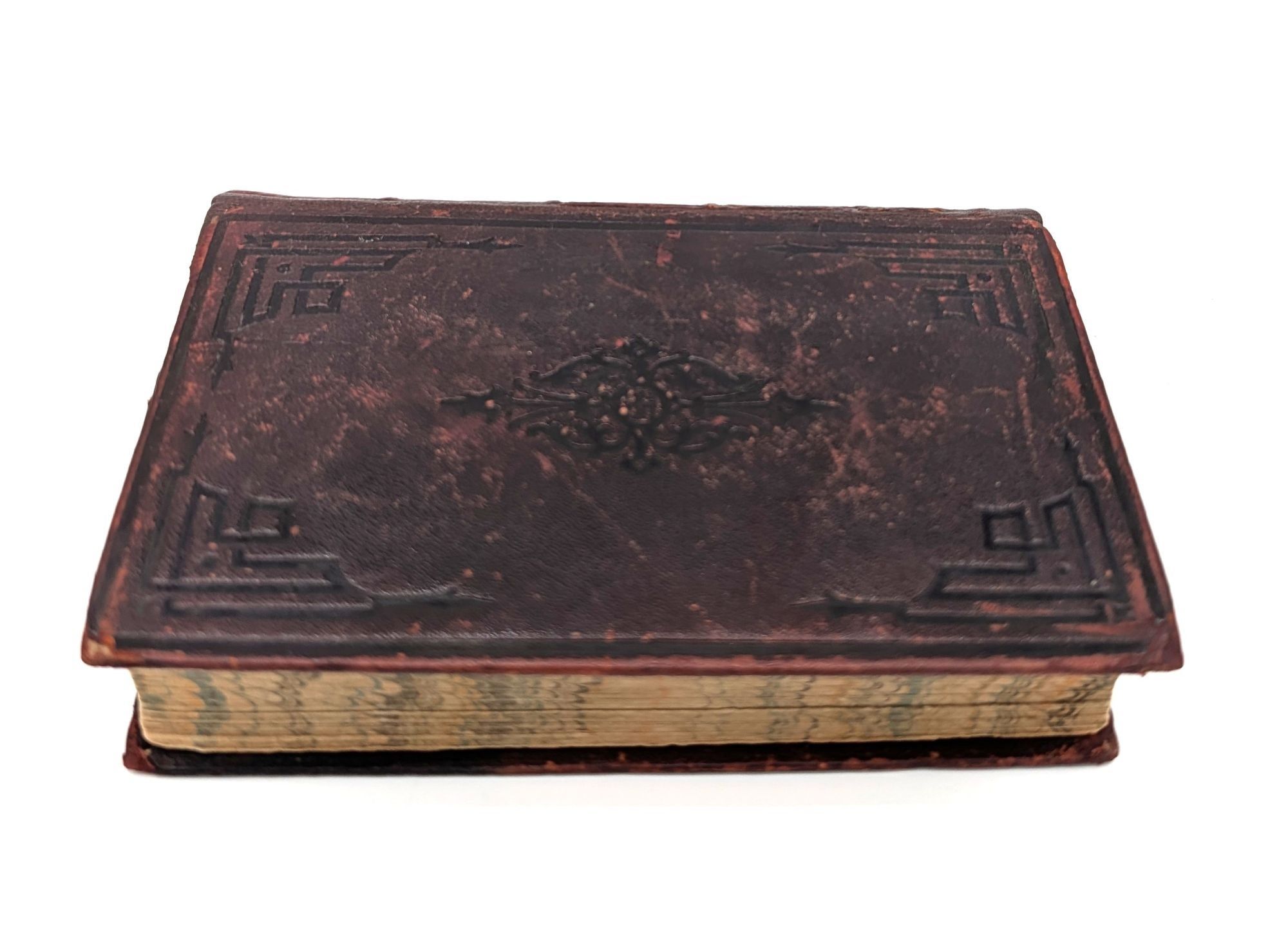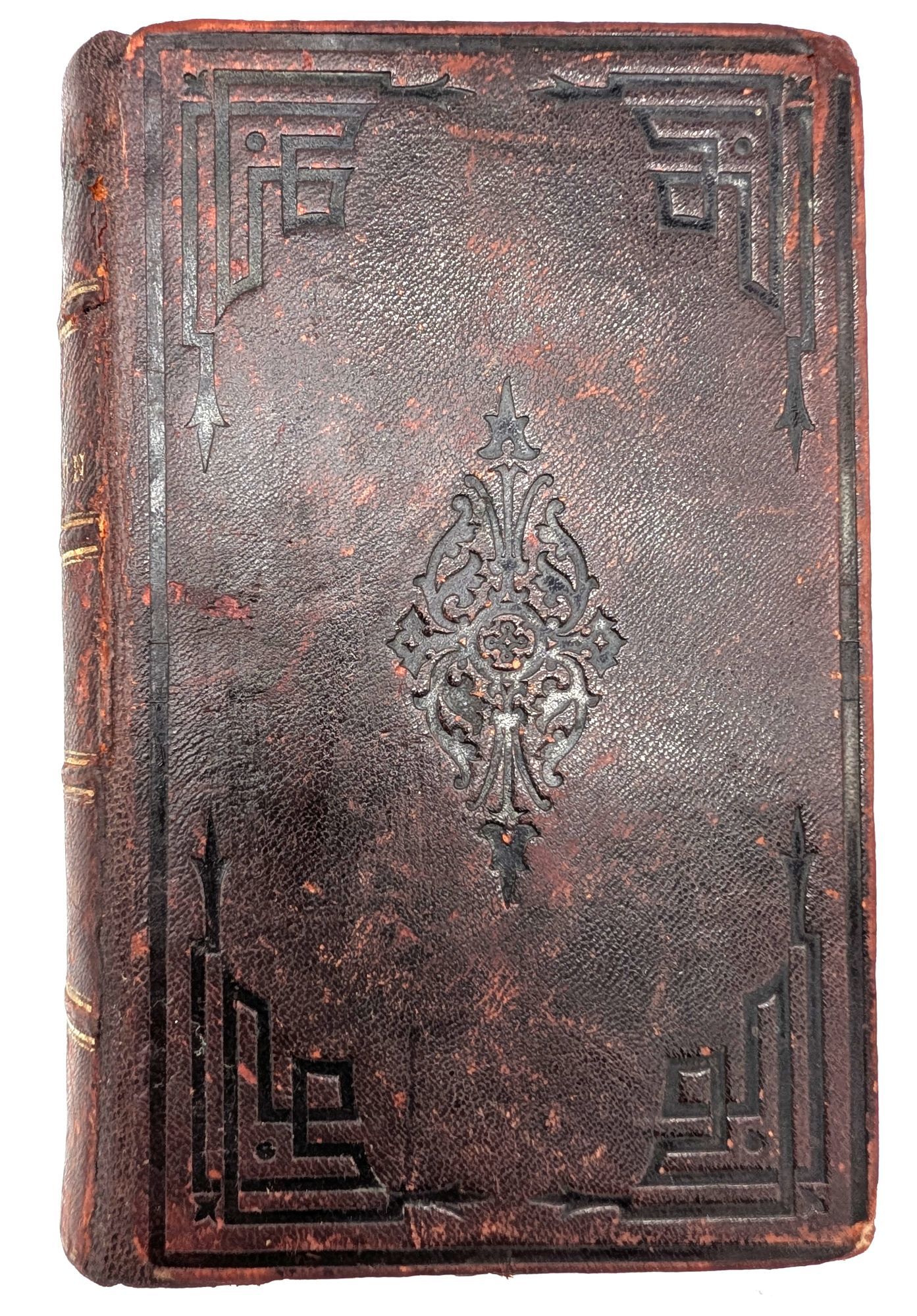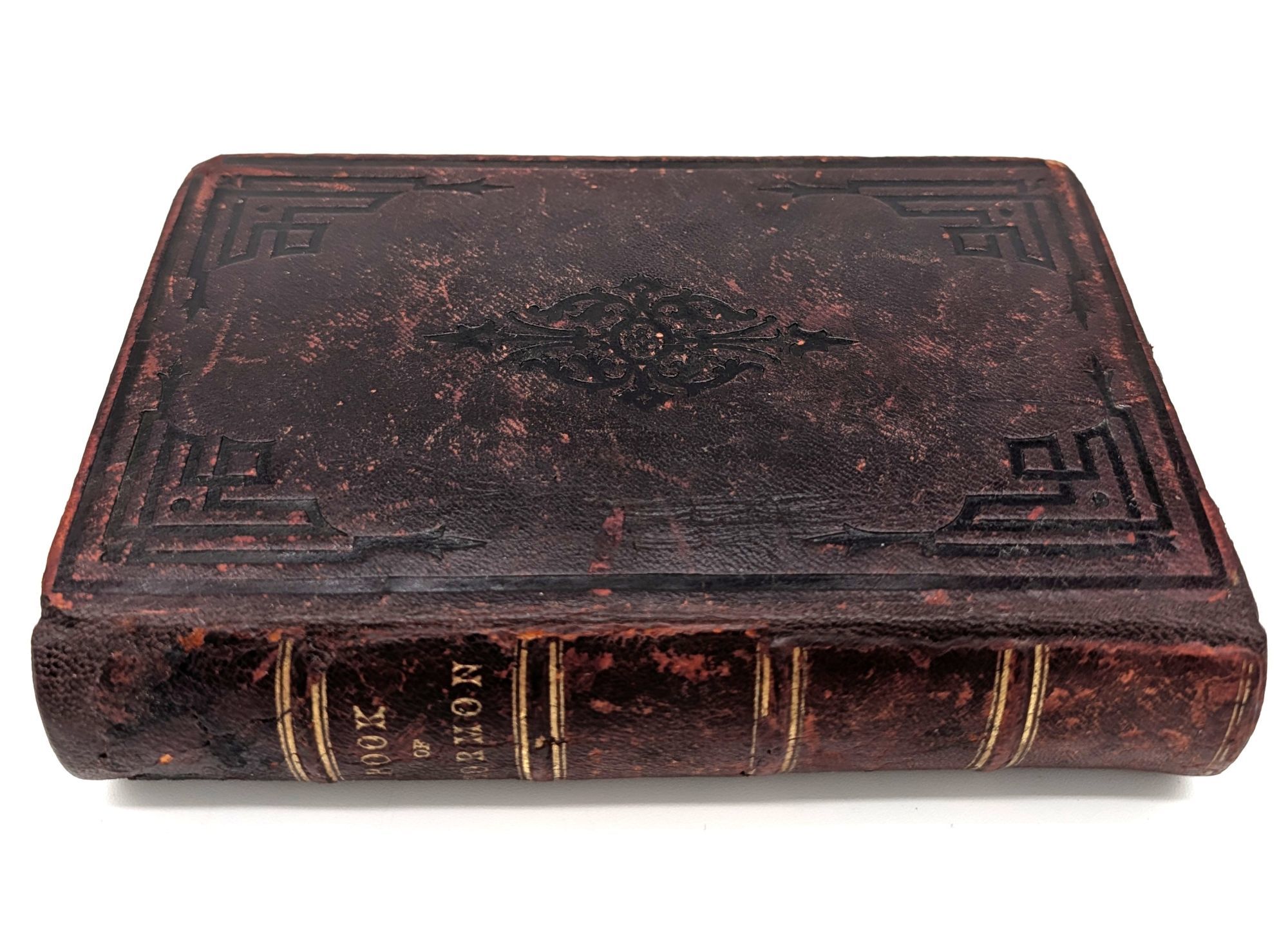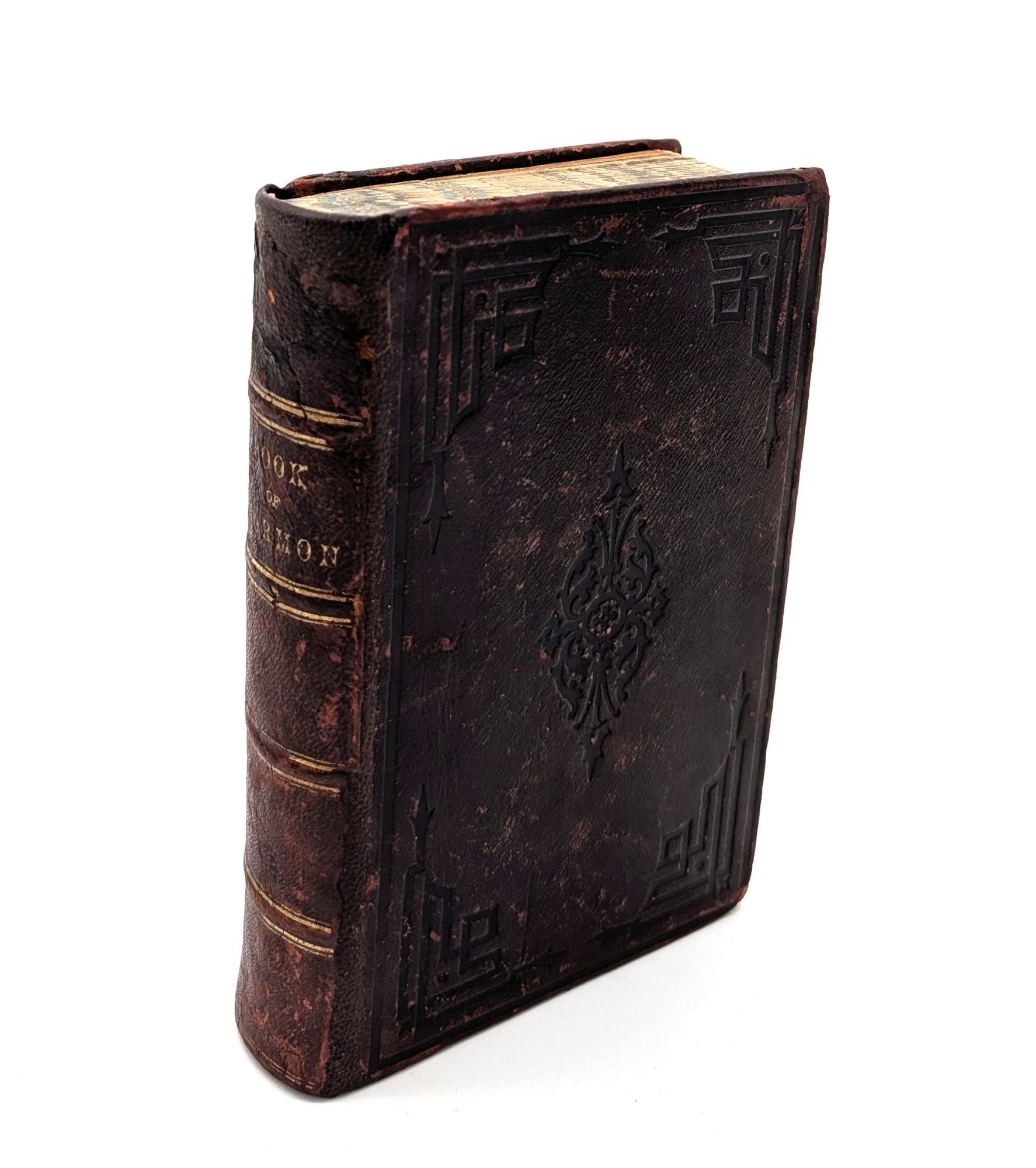 Plano, ILL: Published by the Reorganized Church of Jesus Christ of Latter-day Saints, 1878. An early Plano RLDS edition. Leather bound. Very Good. 545pp. Sextodecimo [16 cm] Maroon leather. Rebacked, with much of the original spine overlaid. Original blind stamped decorative boards. Leather polished. Gilt title and gilt-ruled bands on the spine. Marbled text block edges and endpapers. Exposed corners of boards touched up. Extremities a bit rubbed and scratched. Faint moisture stain on fore-edge of text block measuring 1/4" wide by 2" tall. This stain only bleeds into the fore-edge margins of the first several pages. Complete. Flake/Draper 614a? Two editions were published in 1874, one in Plano, Illinois and the other in Lamoni, Iowa. The Plano edition is considered the first and more scarce of the two RLDS editions.