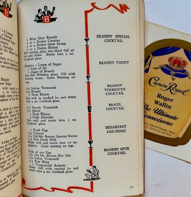 Boston: Bem Burk Inc, 1935. Decorative Boards. Very Good. The 1935 true 1st edition, in its familiar dark-red and black boards (colors shared, ironically, by New York's legendary "21 Club"). Solid and VG, with a touch of mild fraying at the spine crown and along the rear outer hinge. Very light toning as well to the front panel's gilt-titling and cameo of "Old Mr. Boston". Internally very sharp, with no writing or markings to speak of. 12mo, wonderful Art Deco-ish illustrations throughout, in their vibrabt colors, complementing the text. Alphabetized listings of seemingly every cocktail imaginable, rendering this a naughty, spirits-themed alphabet book, among other things. Uncommon in its original 1935 printing.