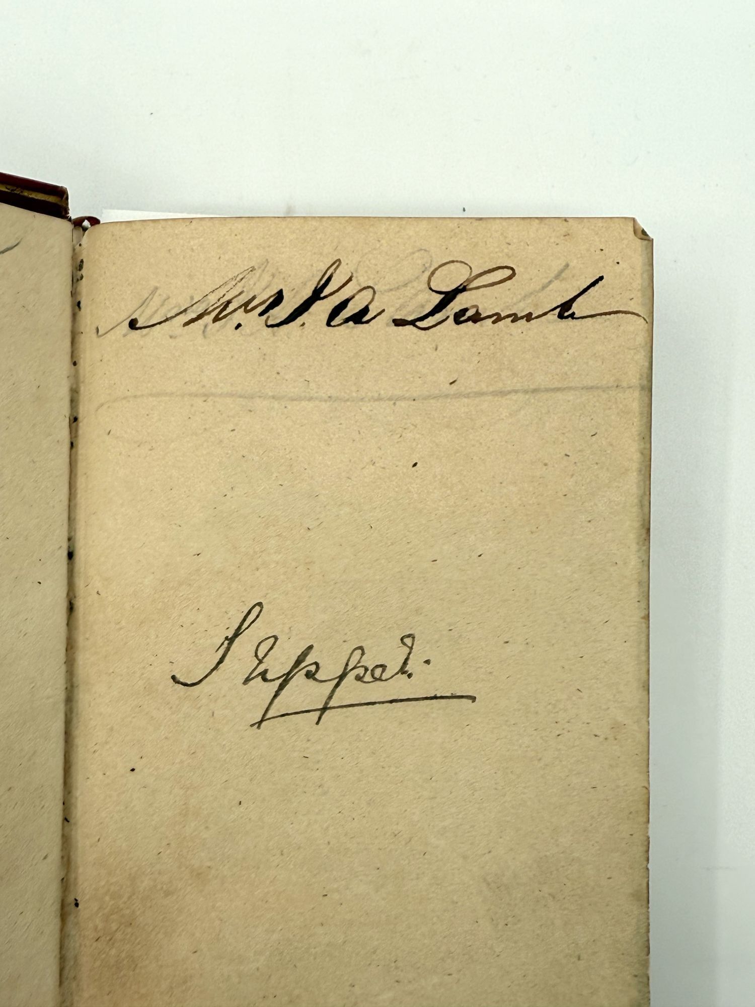 The provenance of this copy, noted below, appears to indicate that at some point soon after publication it traveled to the nascent United States, where the Lambs were prominent Boston shipping merchants in the late 1770s–early 1800s. The Reverend Alfred Niese — who was educated at the General Theological Seminary — was a rector in both New Jersey and Maine, and his fellow pastor and GST graduate, Ledlie Laughlin, served first in New Jersey, and was then instrumental in the reconstruction of St. Luke-in-the-Fields in Greenwich Village, which burned in 1981 during his progressive rectorship.