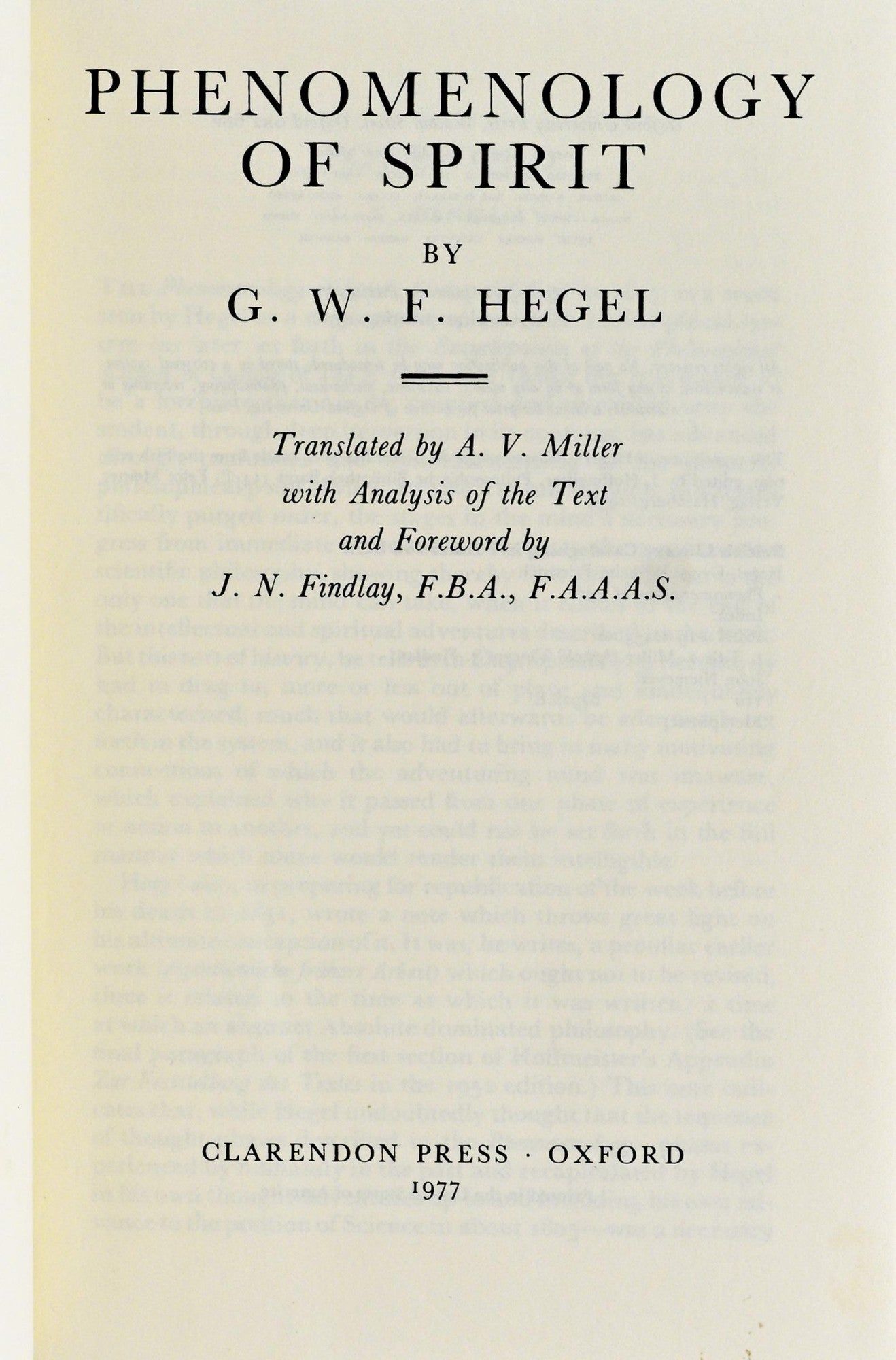 Oxford: Clarendon Press, 1977. First American Edition. Hard Cover. Very Good+ binding/Very Good+ dust jacket. Octavo; in the publisher’s blue cloth; in an unclipped jacket; xxxiv, 595 pages including the Index; a bit of wear to the edges of the jacket; some toning; light edgewear to the boards; a bit of toning to the front end paper; pencil annotations in the margins. ~~From the front flap “ Hegel’s Phenomenology of Spirit was his first major publication and he described it as his “voyage of discovery”. Very Good+ binding / Very Good+ dust jacket.