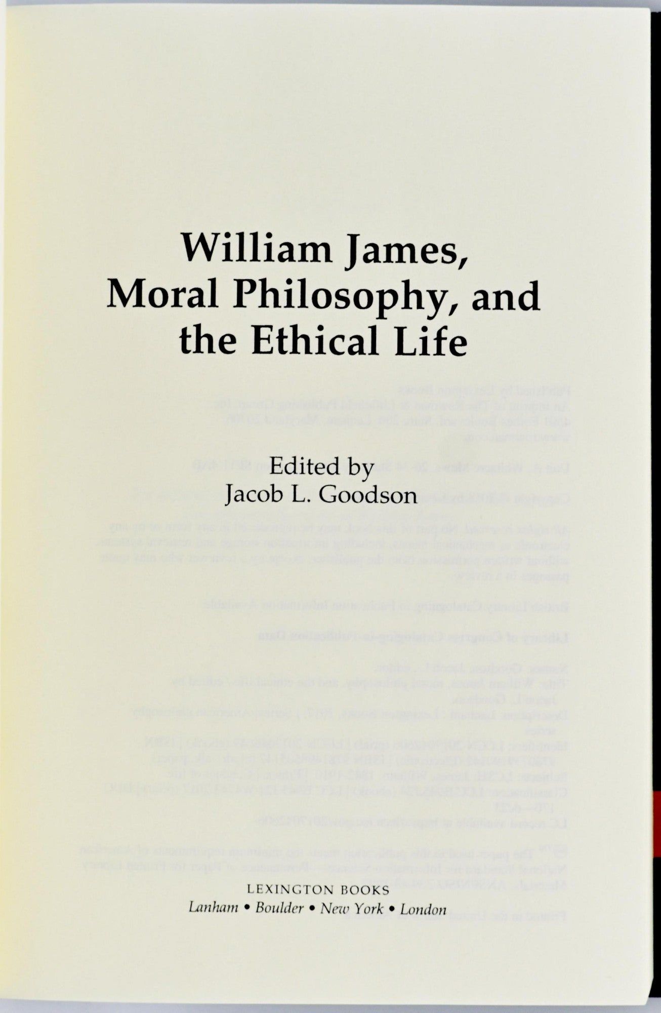 [PHILOSOPHY] WILLIAM JAMES, MORAL PHILOSOPHY, AND THE ETHICAL LIFE Lanham: Lexington Books, 2017 By Jacob L. Goodson Lanham: Lexington Books, 2017. Near Fine binding. Octavo; in pictorial boards; xxi, 408 pages including the Index. Near Fine binding.