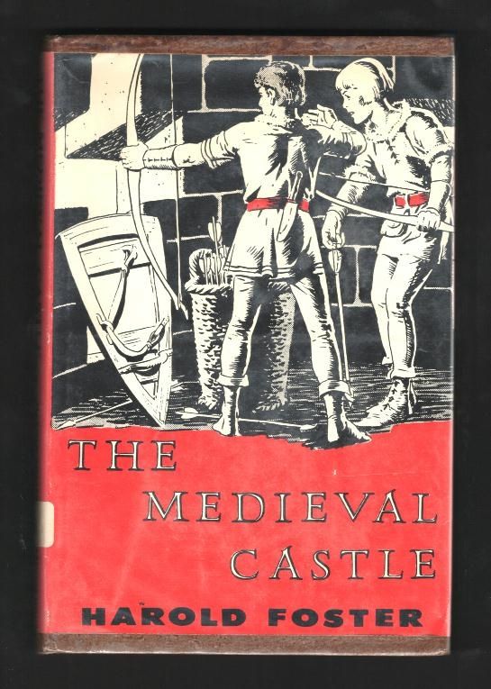 New York: Hastings House. Fair in Good dj. (c.1957). First Edition. Hardcover. (price-clipped) [an ex-school library book, shelfworn but firmly bound, with all the usual treatments (circulation pocket and bar-code affixed to front endpaper, school name (Marigold School) stamped on several pages, otherwise internally clean); the dust jacket is encased in one of those old-fashioned plastic protective covers with the faux-wood strips along the top and bottom edges (worn but not damaged), and the flaps are thoroughly glued to the inside covers (with accompanying glue-stains)] (B&W line drawings) Story "about the day-to-day life of two brothers growing up in England during the time of the First Crusade," written and illustrated by Hal Foster, famous for his long-running "Prince Valiant" comic strip. "Through their eyes the reader watches the storming of the castle, the working of the war machines -- in fact, the whole ebb and flow of battle as it took place in those times. [The drawings] are fascinating and accurate in every detail . . . authentic history portrayed in an easy and most interesting way." .