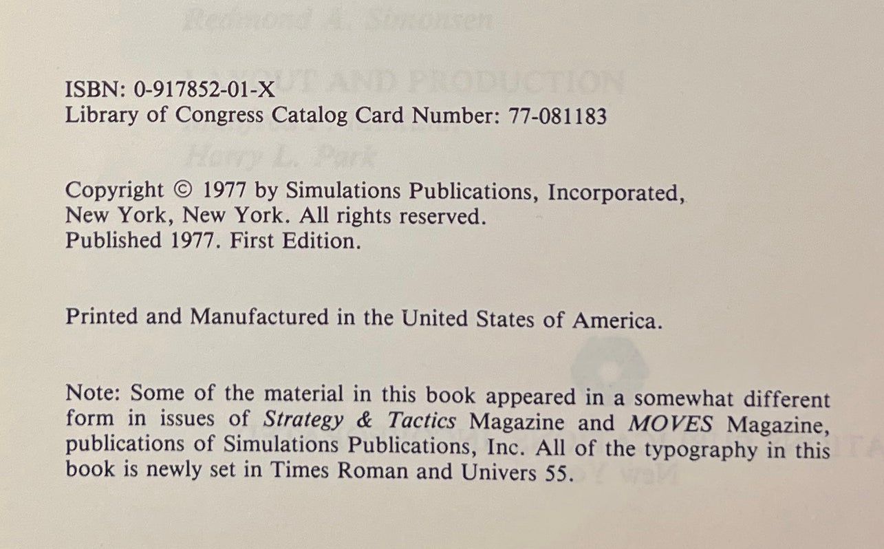 New York: Simulations Publications, Inc, 1977. First Edition. Hardcover. Near Fine/Good. Staff Study Nr. 2. Near Fine in a Good jacket, unclipped (no price), generally toned and soiled, faded at the spine, a few tears at the edges. Blue cloth with silver gilt lettering on the spine and front board. Square and firmly bound, some soiling at the fore-edge, clean otherwise.