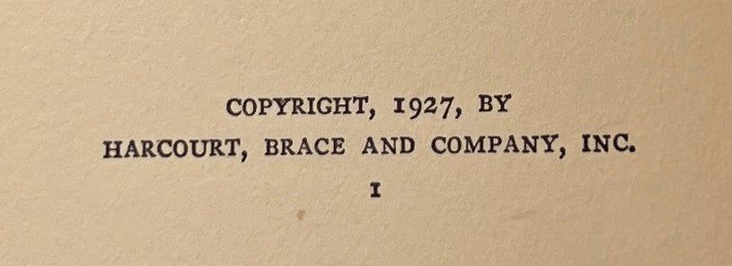 New York: Harcourt Brace and Company, 1927. First Edition. Hardcover. Good. Good, lacking the jacket. Green cloth, toned at the spine, bumped and with some fraying and tears at the edges. Square, mostly firmly bound though the front endpaper has been removed and the front hinge is cracked, soiled at the top edge, clean otherwise The first U.S. edition of Woolf's novel named one of the 100 best in the English-language according to the Modern Library.