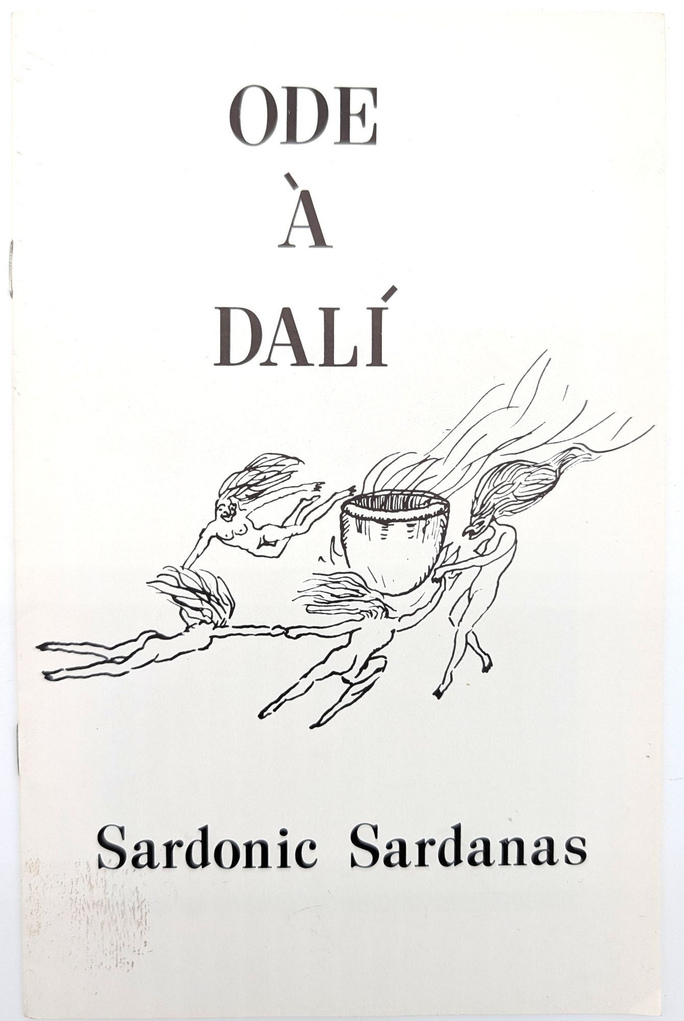 Cleveland, Ohio: Éditions Chagrin, 1967. First edition. Paperback. Very Good +. 12pp. 21.5 cm tall. Saddle-stitched white and black printed wraps. Small area of soiling on front wrap. Price sticker residue on rear wrap. Internally clean and bright. Majority of text in English, with occasional text in French. A poem about Dalí accompanied by seven illustrations.