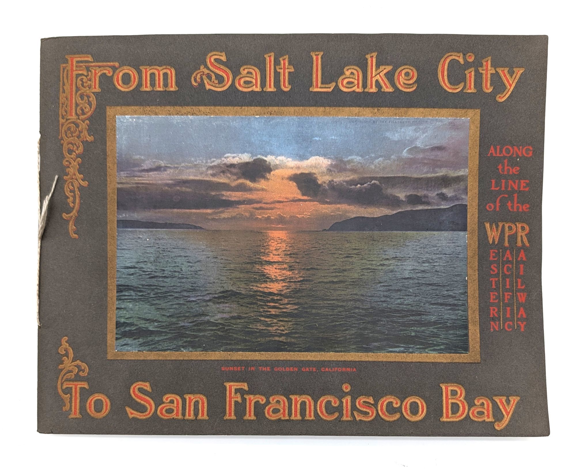 Salt Lake City, UT: Van Noy Inter-State Co, No date. Paperback. Very Good +. Oblong quarto [24 cm x 30.5 cm] Black wraps with a decorative title and an illustrated paper label (image looks from San Francisco Bay westward to the great Pacific) mounted to the front cover and a string tie binding. With minor wear to the wraps. Consisting of Twenty-Five Views in Eleven Colors. Contains an Explanation of Subjects Illustrated. With three images of Utah, two of Nevada, and twenty of California.