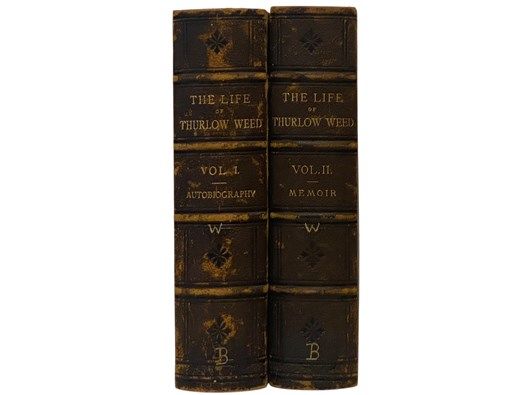 Boston / Cambridge: Houghton, Mifflin and Company / The Riverside Press, 1884. Reprint. Half-Leather. Good/No Jacket. 0x0x0. Former library copy with typical marks. Boards rubbed and lightly soiled, front hinge of first volume weakening. 1884 Half-Leather. xxii, 657; xviii, 617 pp. 8vo. Leather spines and corners, gilt titles, pebbled cloth boards, marbled edges and endpapers. Illustrated with steel engraved plates, including portraits of Thurlow Weed, John Quincy Adams, William Morgan, William H. Seward, William Henry Harrison, Zachary Taylor, De Witt Clinton, Henry Clay, William L. Marcy, Daniel Webster, Winfield Scott, and Abraham Lincoln. Memoirs of the 'wizard of the lobby' who helped several candidates for president win their nominations. "Thurlow Weed (November 15, 1797 - November 22, 1882), was a New York political boss. While he never held national office himself, he was the principal political advisor to the prominent New York politician William H. Seward and was instrumental in the presidential nominations of William Henry Harrison (1840), Henry Clay (1844), Zachary Taylor (1848), Winfield Scott (1852), and John Charles Fremont (1856).