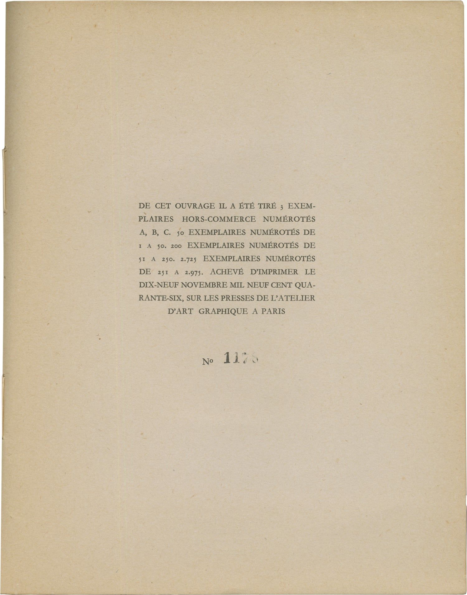Paris: Éditions de Clermont, 1946. First Edition. Softcover. First Edition, limited to 2975 copies, this being No. 1178. Text in French.