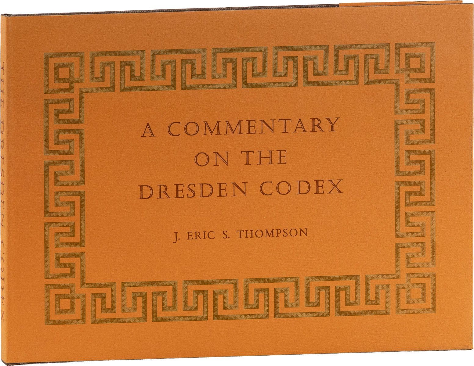 Philadelphia: American Philosophical Society, 1972. Oblong octavo (28cm x 39cm); brown cloth-covered boards, with titling stamped in gilt on spine and front cover; dustjacket; [xii],[2],3-156,[4]pp; colorful illustrations. Memoirs of the American Philosophical Society, held at Philadelphia for promoting useful knowledge, Volume 93. This copy is from the library of noted poet, translator, and anthropologist Nathaniel Tarn (1928-2024), with his pictorial bookplate to front pastedown. Soil to front cover; Very Good. Dustwrapper, unclipped (priced $25.00), with light shelf-wear and -soil; Very Good+. Text focuses on commentary around Maya writing and books, and the appearance and history of the Codex Dresden, with concluding hieroglyphic glossary and index. [87900].