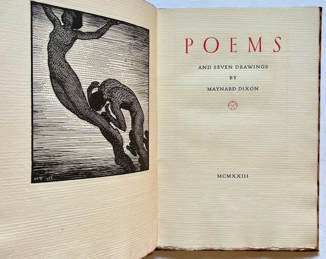 San Francisco: Grabhorn Press, 1923. Decorative Boards. Near Fine. 1st edition, 1923. Small 4to, 38 pgs. plus 7 leaves (of plates) produced especially for this title. Versos blank, Title printed in black and red, Goudy Antique handset type. Original decorative batik boards. Minor bumping to spine ends but a very fine, tight copy without the usual offsetting from the plates. Maynard Dixon (1875-1946) was born on a ranch near Fresno, California. He was a prominent illustrator and landscape and mural painter of the early 20th-century American West. "Dixon sought to 'interpret the vastness, the loneliness' of the Western scene. On the theory that by showing little, much could be conveyed, he succeeded in bringing to his audience the very essence of an untamed and oftentimes inhospitable land. He did this through keen observation and unrelenting effort, for he was almost entirely without formal training". -- Doris Ostrander Dawdy (Artists of the American West Volume I: A Biographical Dictionary, p. 71). One of 250 copies privately printed for Maynard Dixon in January, 1923, by the Grabhorn Press. According to the entry in the Grabhorn Bibliography, "Some copies sold". The Bibliography mentions two different bindings for this book: coarse tan linen with decorations hand-painted in orange on front and back covers, or tan boards printed in black. This copy is an original Grabhorn binding but is a rare variant not mentioned in the Bibliography. Today this work is very rare and very sought after, especially in such superb condition (Grabhorn: 52).
