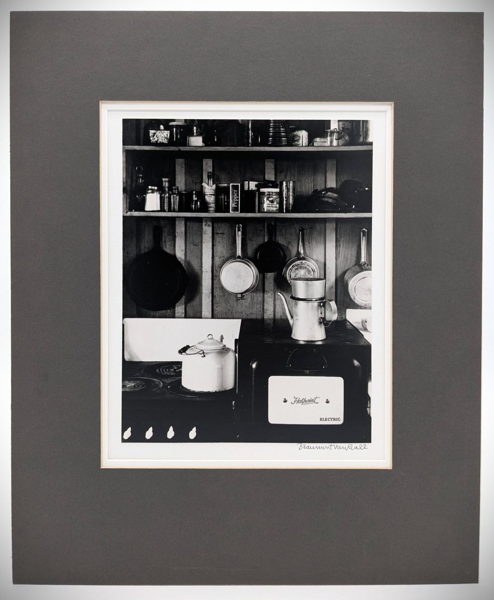Later printing of the 1940 photograph. Photograph. Near Fine. SIGNED. Silver gelatin print (9 5/8" x 7 3/8"); mounted and matted (17" x 14"), and signed 'Beaumont Newhall' in pencil at lower right on the mount.
