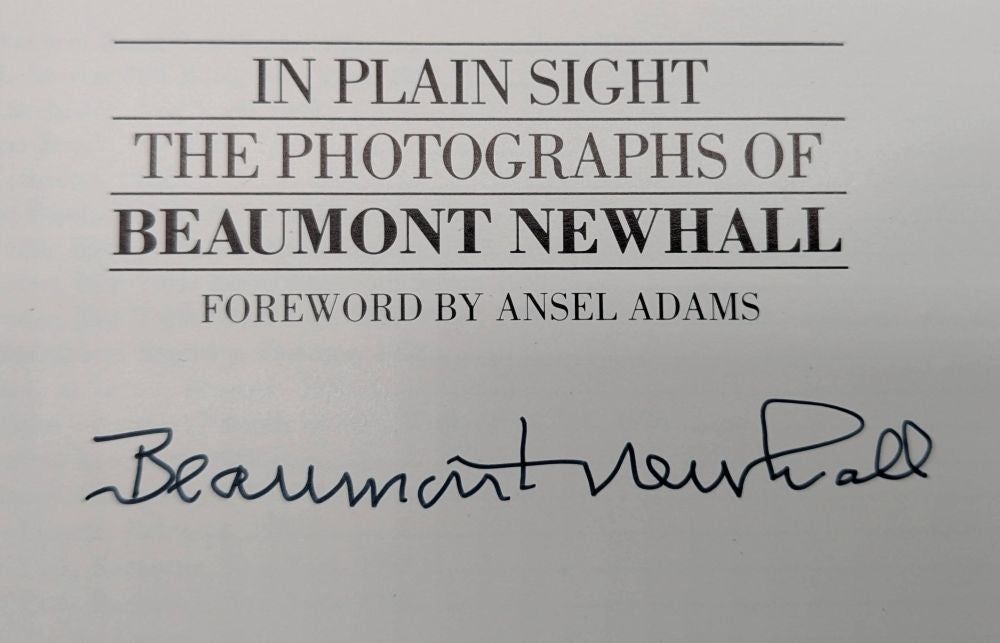 Newhall, Beaumont; Foreword by Ansel Adams. In Plain Sight: The Photographs of Beaumont Newhall. Salt Lake City, UT: Gibbs M. Smith, Inc.; Peregrine Smith Books, 1983. First trade edition. Signed by Beaumont Newhall on the title page. 65 pp. Quarto [29 cm]; full black cloth with silver lettering, in the photo-illustrated dust jacket; Very Good + / Very Good +. Beaumont Newhall's major retrospective; the photograph "Edward Weston's Kitchen" is featured as item forty-one on page 43 of this book. A beautiful and starkly contrasted straight-on view of the famous western photographer Edward Weston's kitchen.
