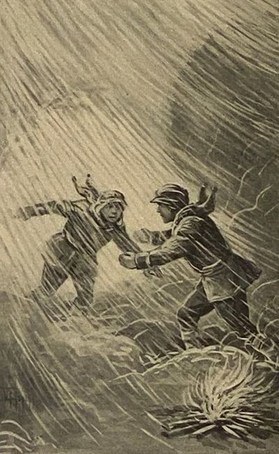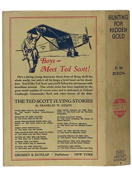 New York: Grosset & Dunlap, 1928. Reprint. Hard Cover. Very Good/Very Good. 7x5x0. Rogers, Walter S.; Gretta, J. [Joseph] Clemens. Mixed state of Carpentieri 1937B-17 and 1939A-18. Boards faintly stained, jacket lightly toned, 1/2 inch closed jacket tear, a couple minor smudges on fore edge, ink gift note dated 1938 on front endpaper, sticker on front jacket flap. Binding tight and square, pages clean, bright, and unmarked. 1928 Hard Cover. iv, 214 pp. Brown boards with dark brown titles, orange Gretta endpapers. #5 in the Hardy Boys series. Frontispiece by Walter S. Rogers. The Hardy Boys try to take down a criminal gang, but find themselves in great peril when they are lured to a Montana mining camp.