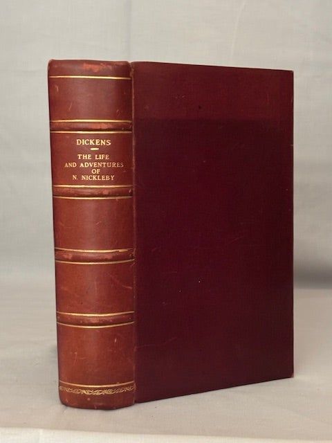 London: Chapman and Hall, 1839. First Edition. mixed issue of text, with page 123, line 17 corrected to "sister" and page 160, line 6 up with "latter" not corrected. Portrait frontispiece of Dickens, illustrated by Phiz, octavo, 624pp. Twentieth Century binding in full brown leather, spine printed in gilt, marbled end papers. Plates are tanned at edges, but images clean; light gutter stain, not affecting text, between pages 186 to 198. Very good.