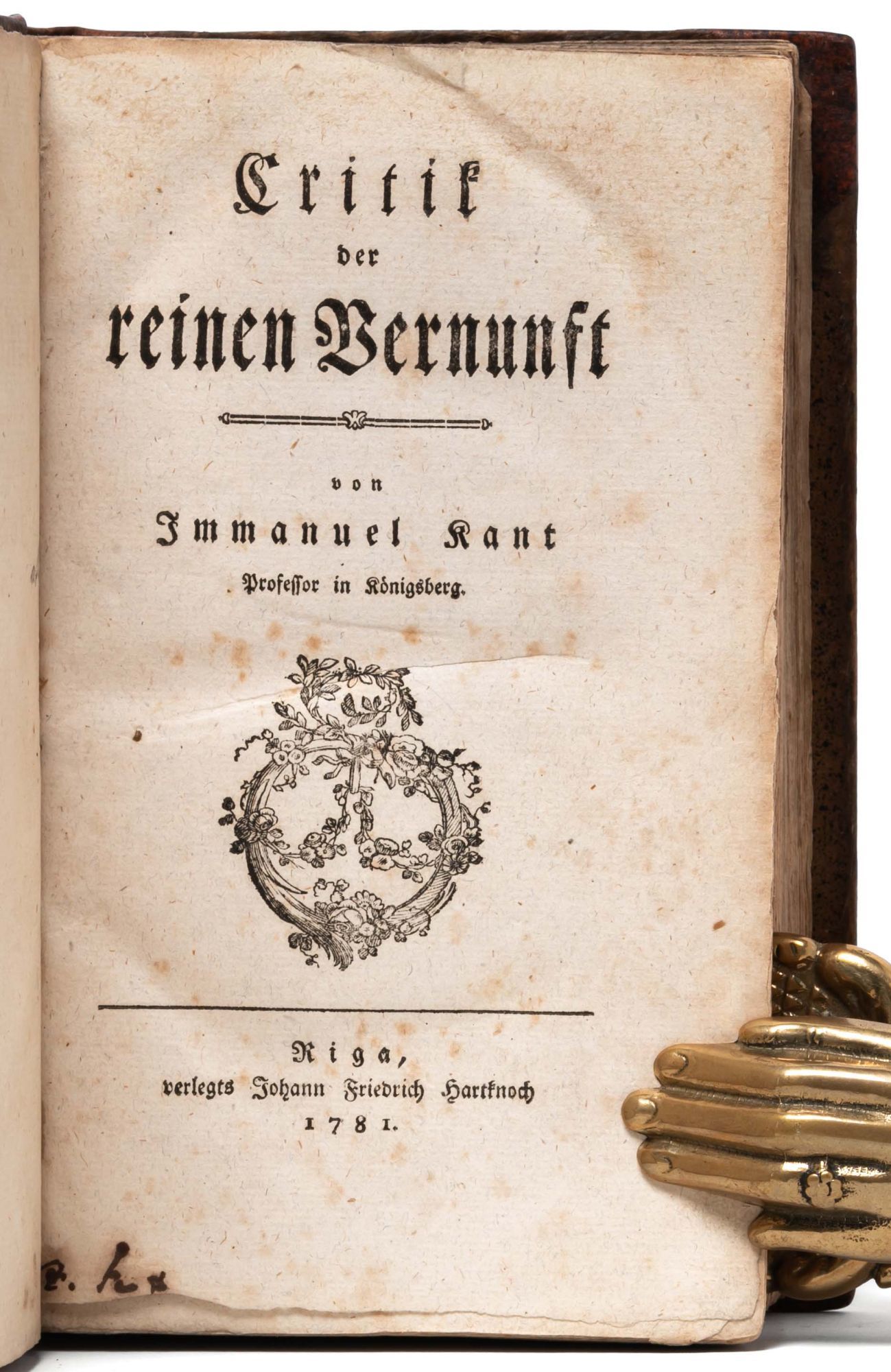 Riga: Johann Friedrich Hartknoch, 1781. First edition. Very Good +. First edition, an uncut copy, of one of the most influential philosophy books ever published: Kant himself (very modestly) judged the work as comparable with the Copernican heliocentric revolution.